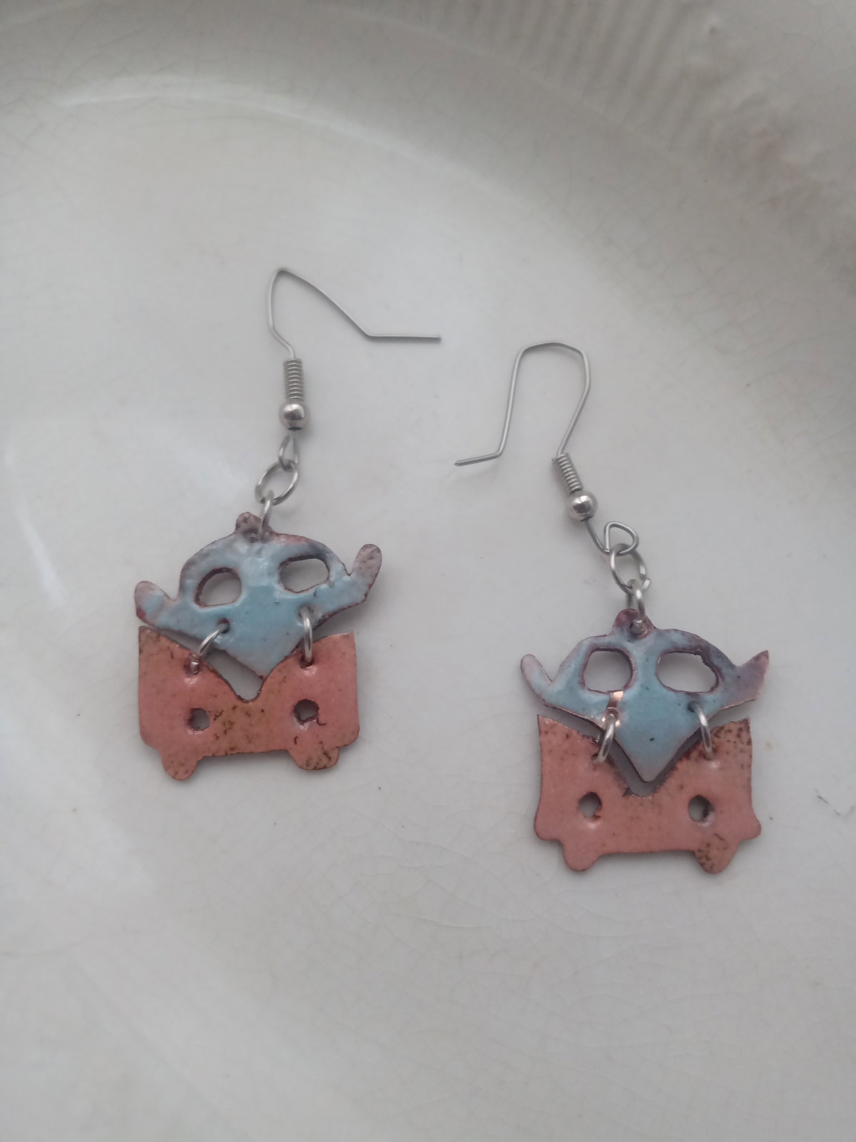 Aros de mini van hippie hecho en cobre esmaltados a fuego . pasantes de acero quirúrgico