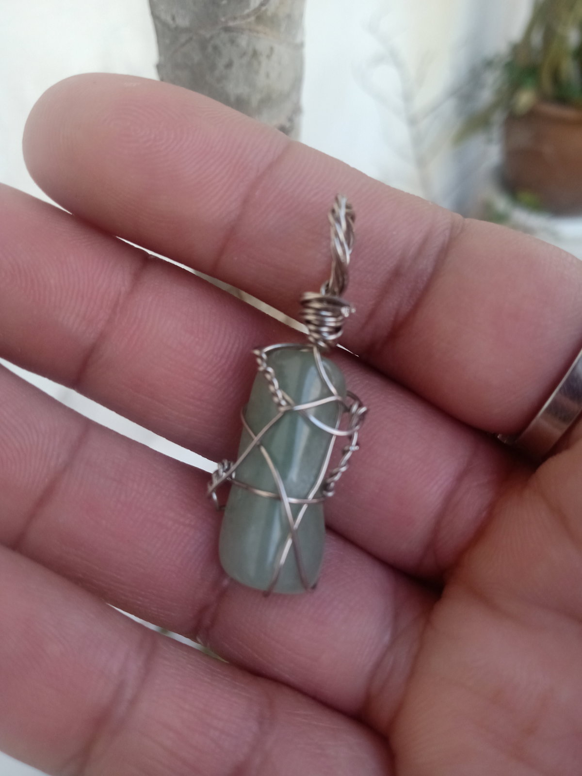 Dije de piedra cuarzo verde engarzado en alambre de alpaca