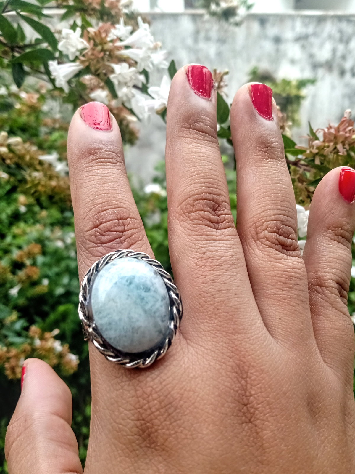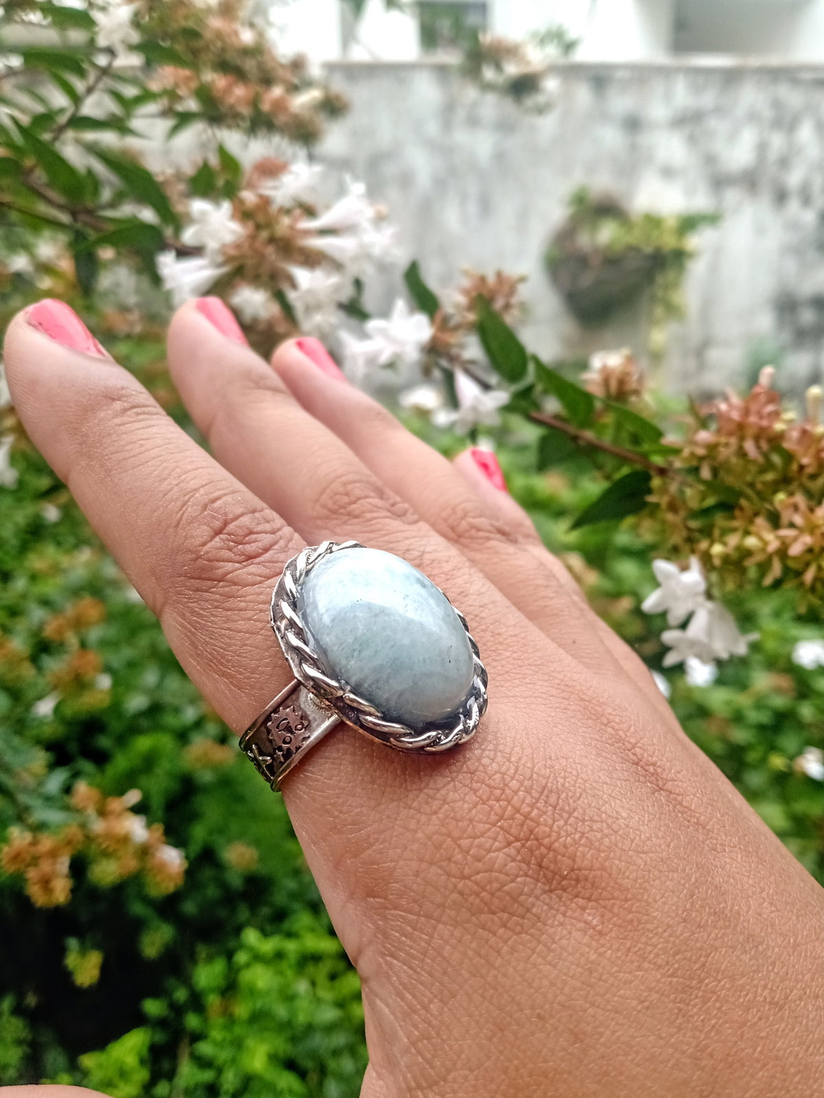 Anillo de alpaca con piedra aguamarina. Ajustable