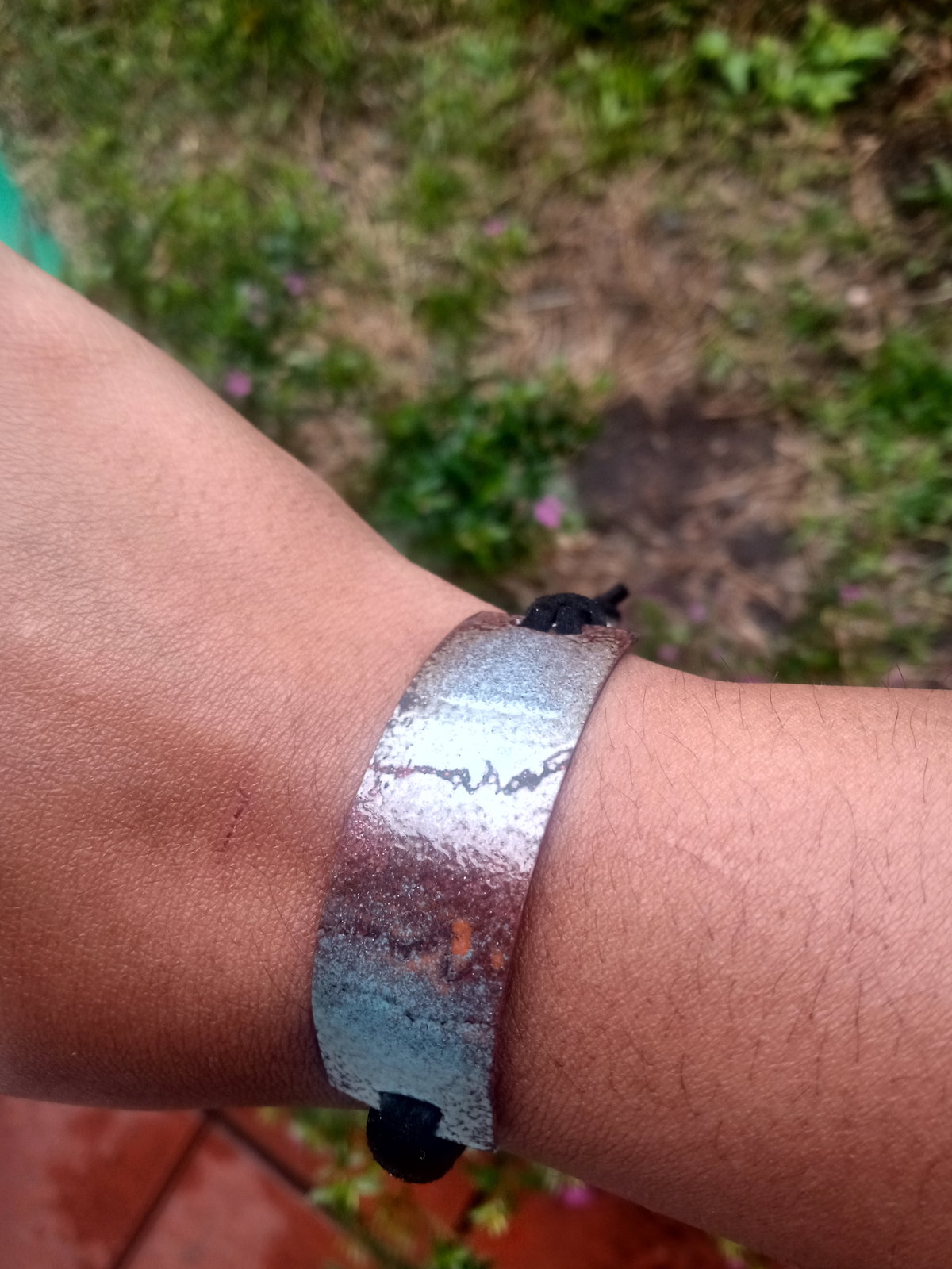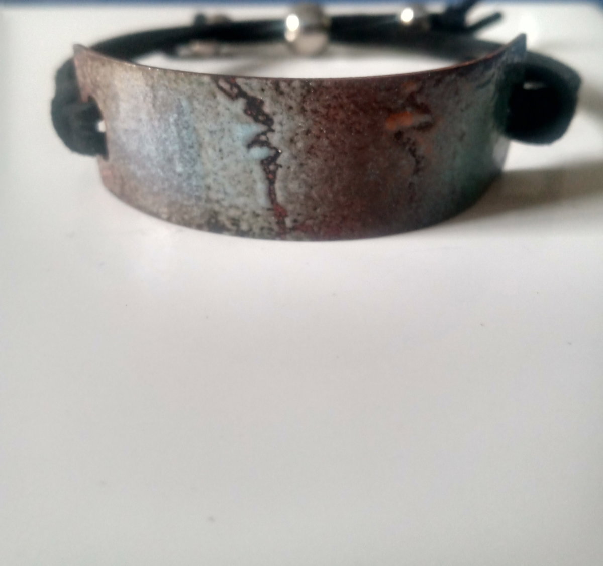 Brazalete esmaltado a fuego. Cordon de gamuza. Ajustable.