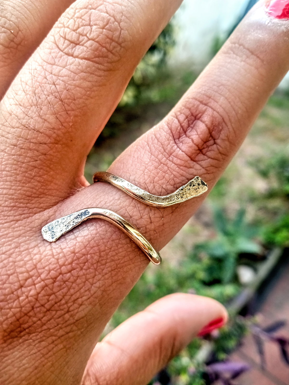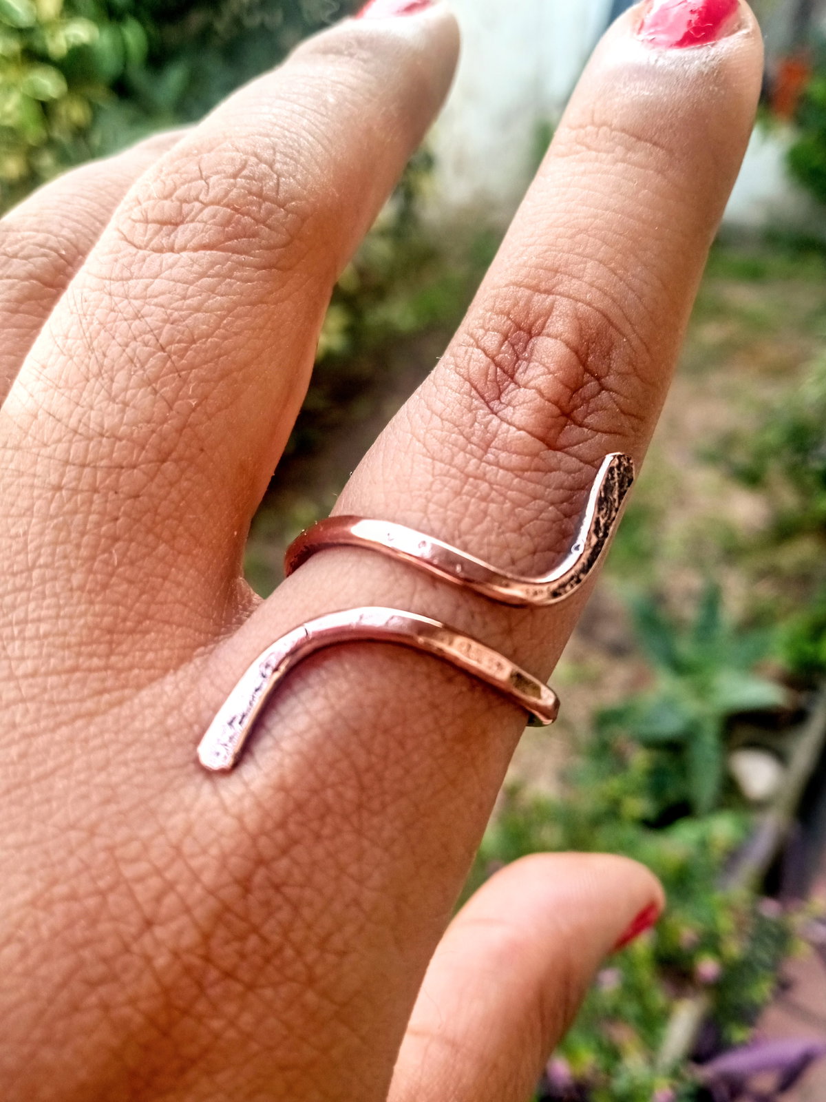 Anillo de alambre grueso hecho en alpaca , bronce o cobre. Son de talle 17, pero con posibilidad de ajustarse a cualquier dedo