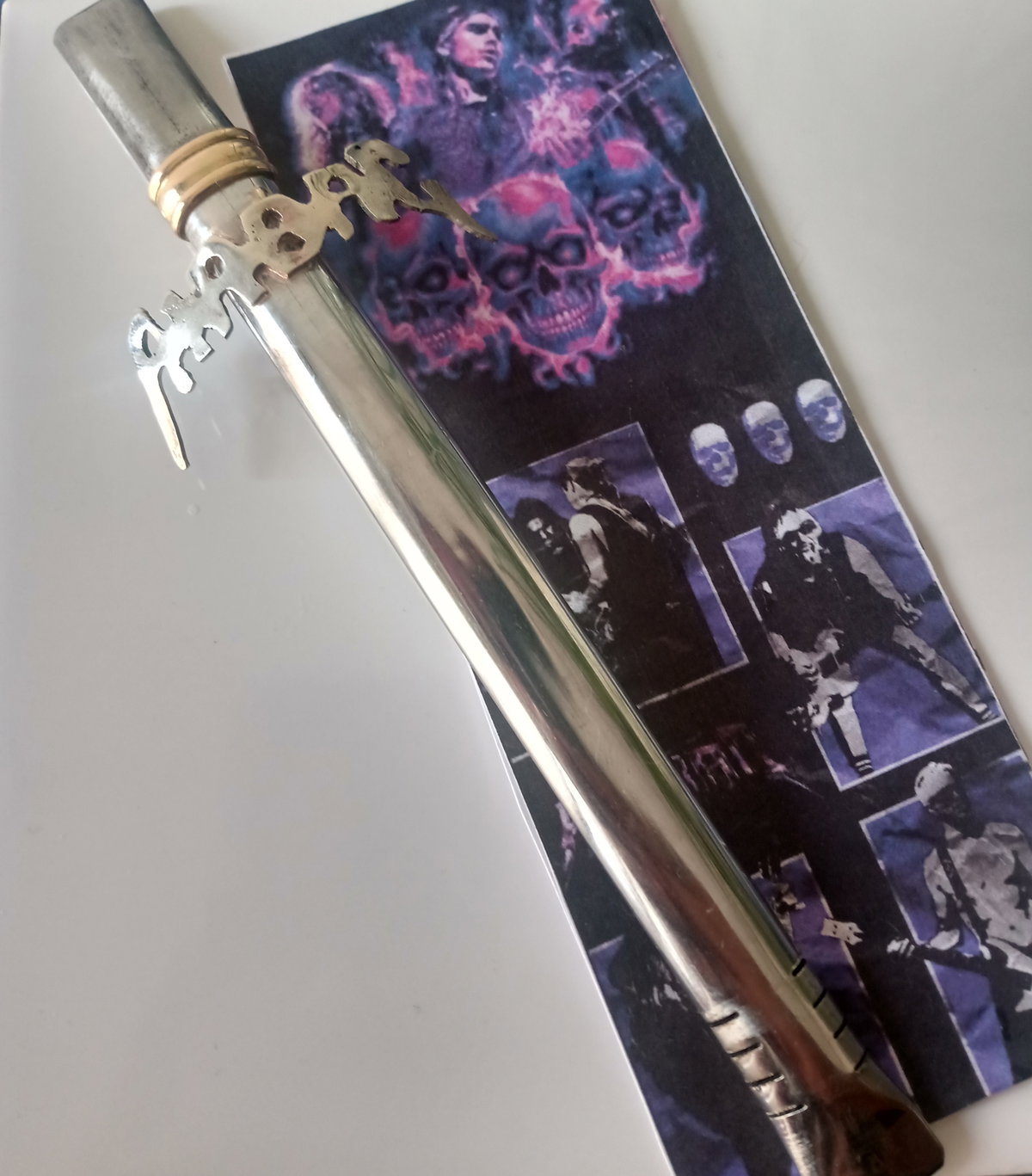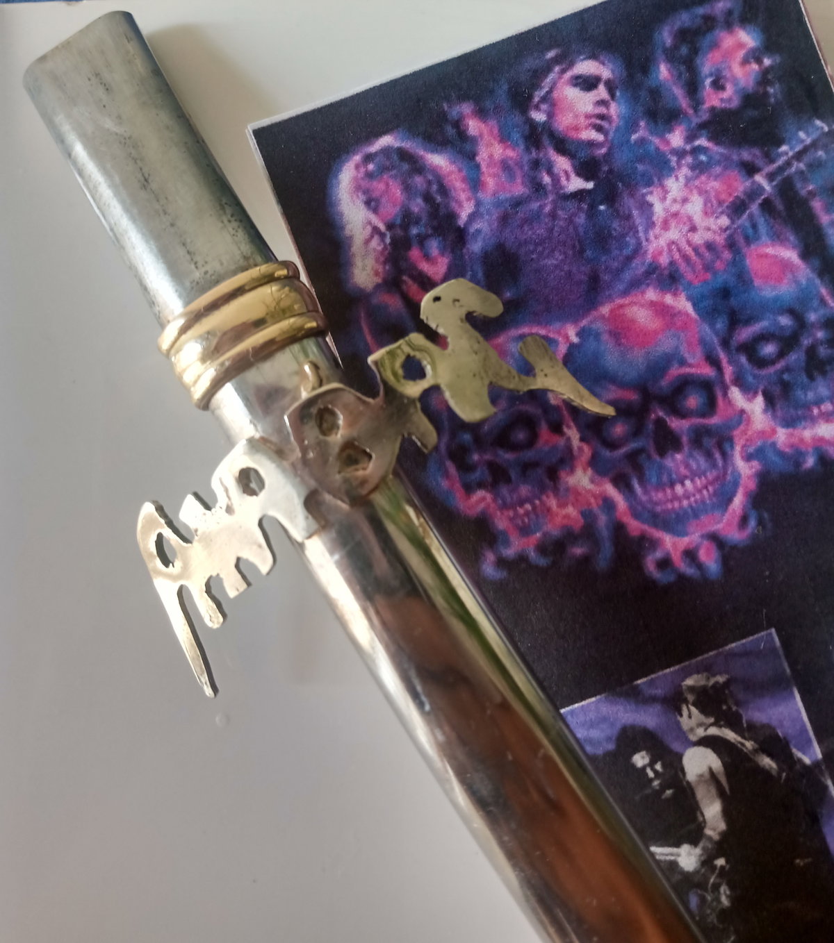 Si eres fanático de Airbag, esta bombilla es ideal para vos. Aplique con el logo de la banda en alpaca. Virola de bronce.