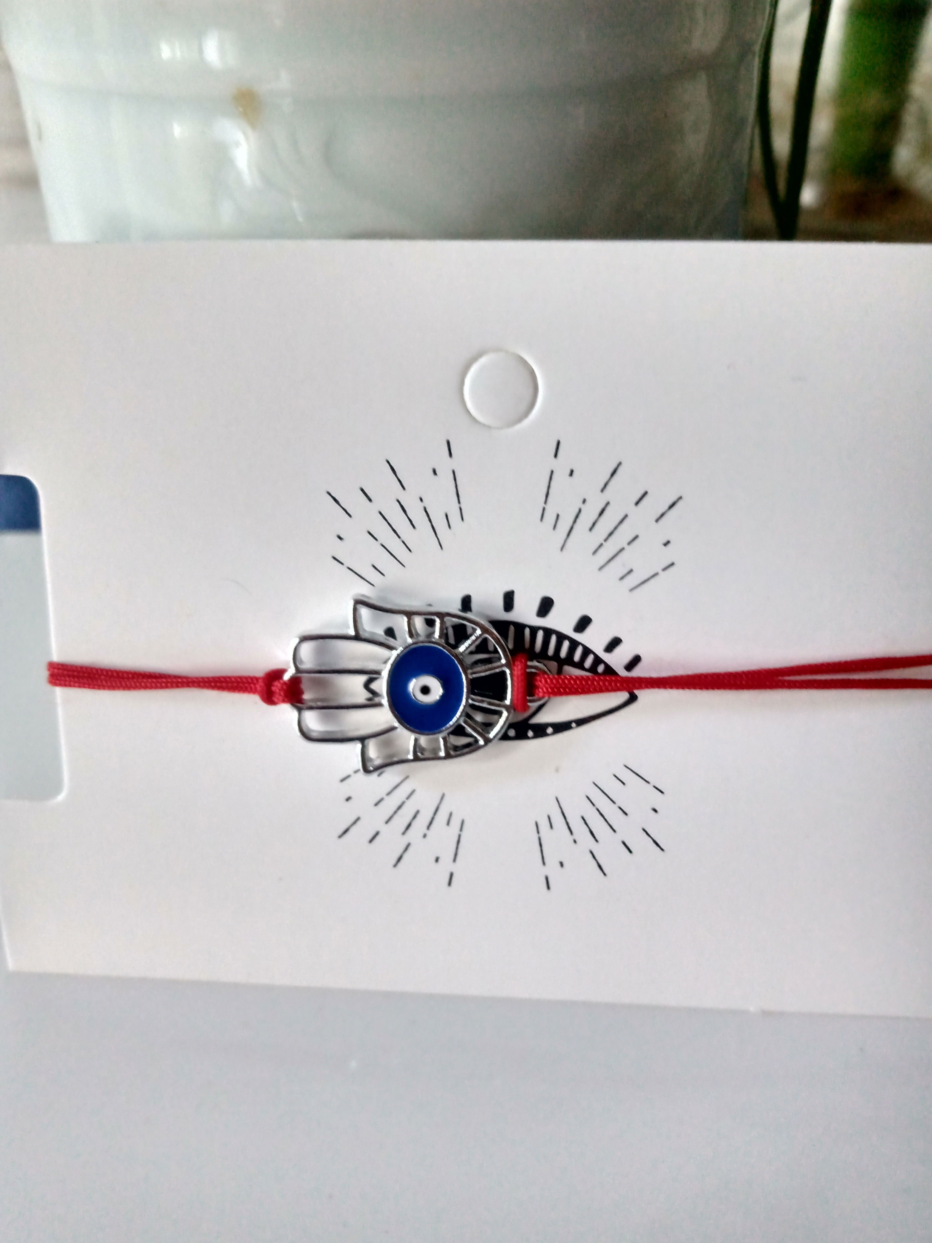 Pulsera de hilo rojo con mano de fatima. La mano de Fátima con ojo turco