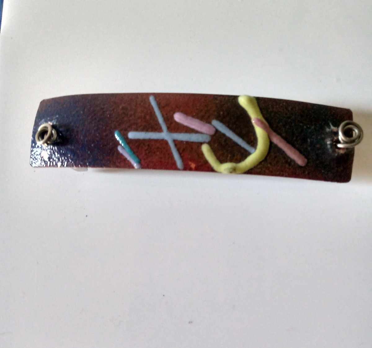 Hebilla francesa con aplique de cobre esmaltado.