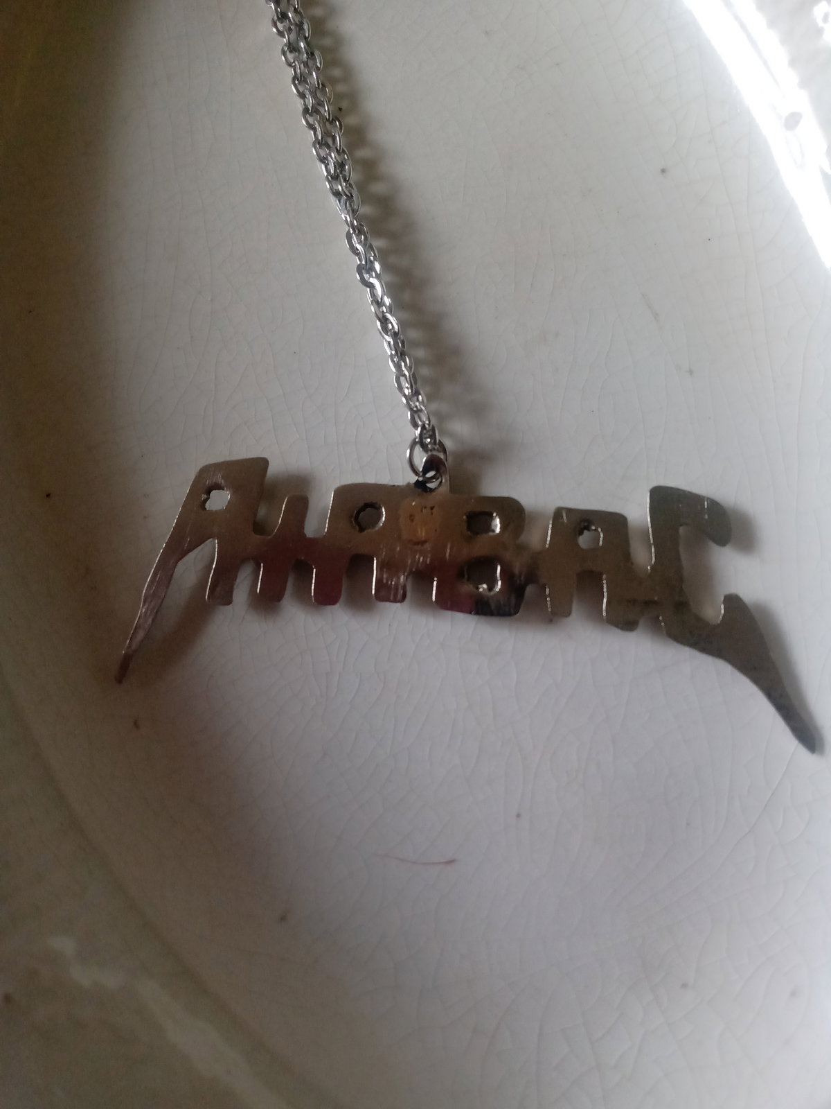 Dije hecho en alpaca con cadena de acero no quirúrgico de 50 cm .