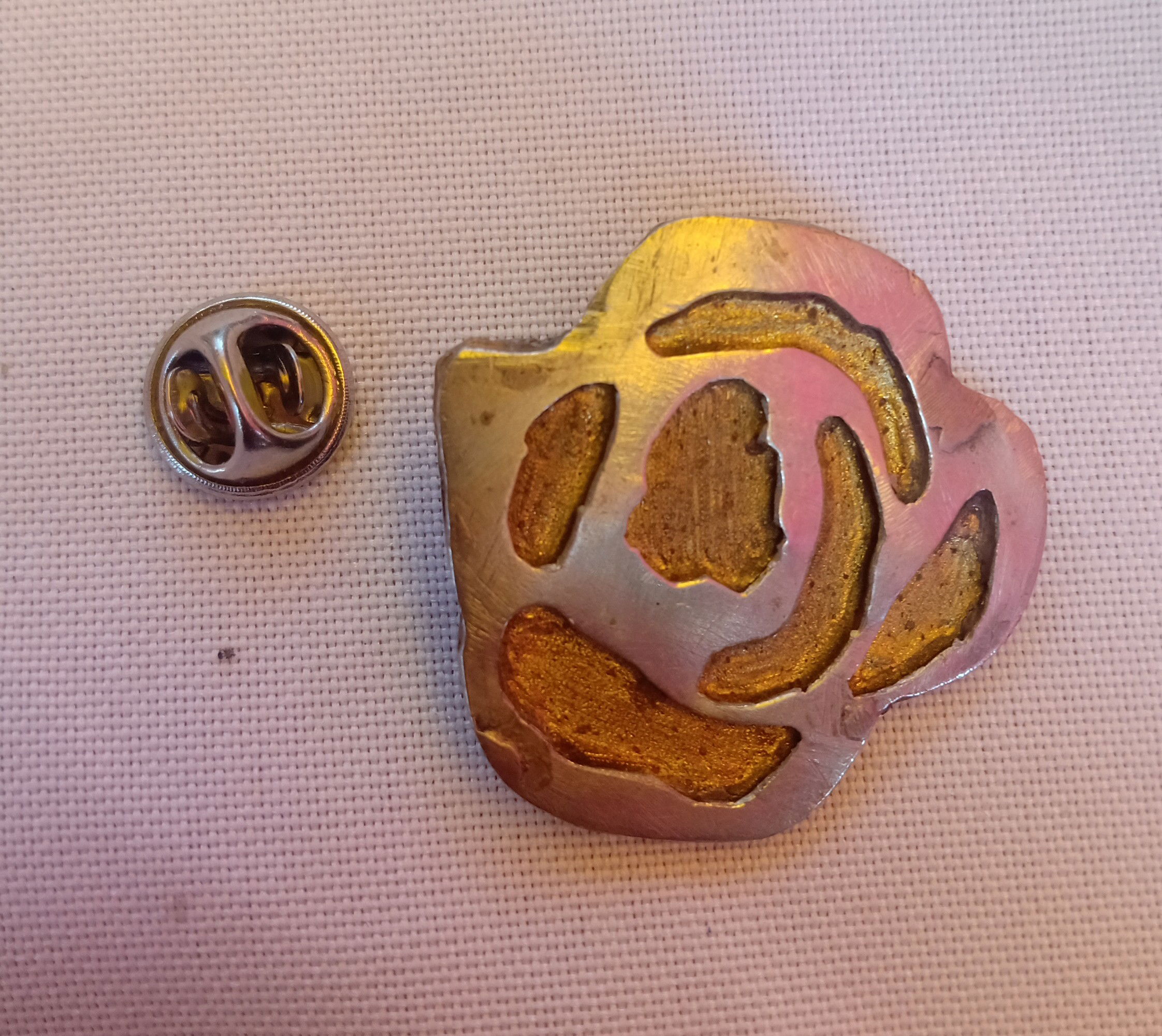 Prendedor flor hecha en alpaca y bronce diamantado.