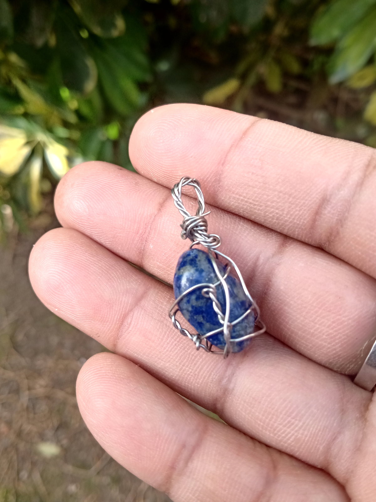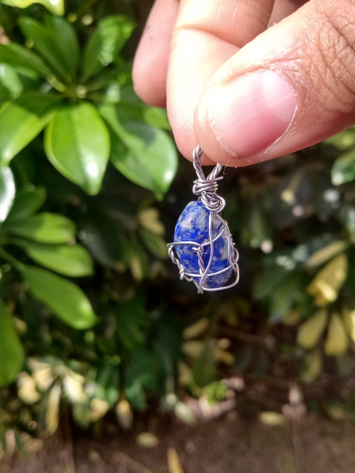 Dije de piedra lápizlasuli engarzado en alambre de alpaca