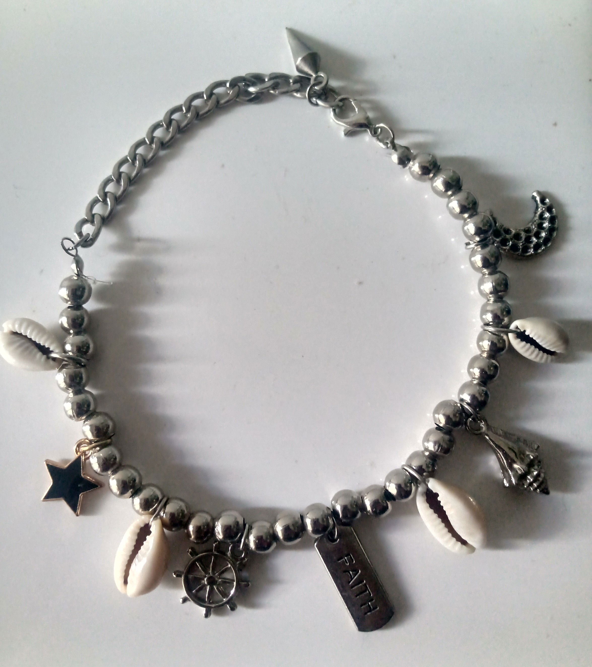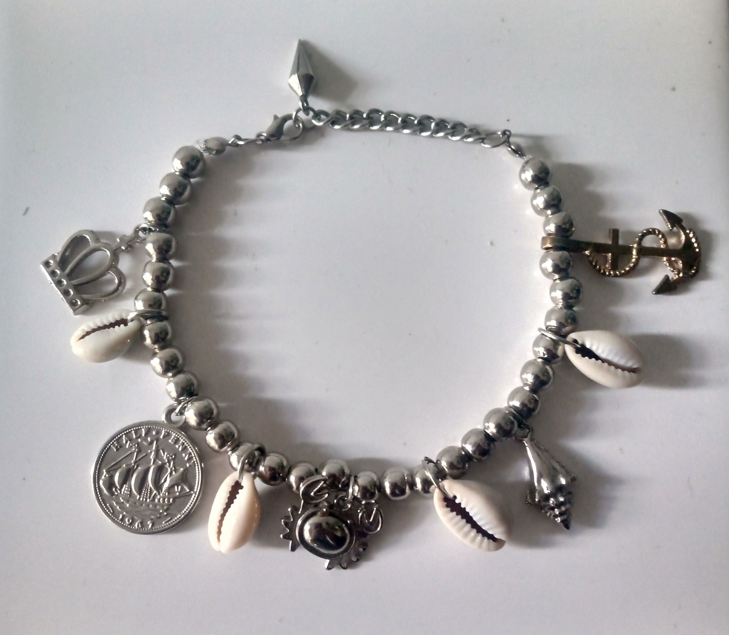 Tobilleras de dijes de caracoles naturales y dijes de n铆quel.