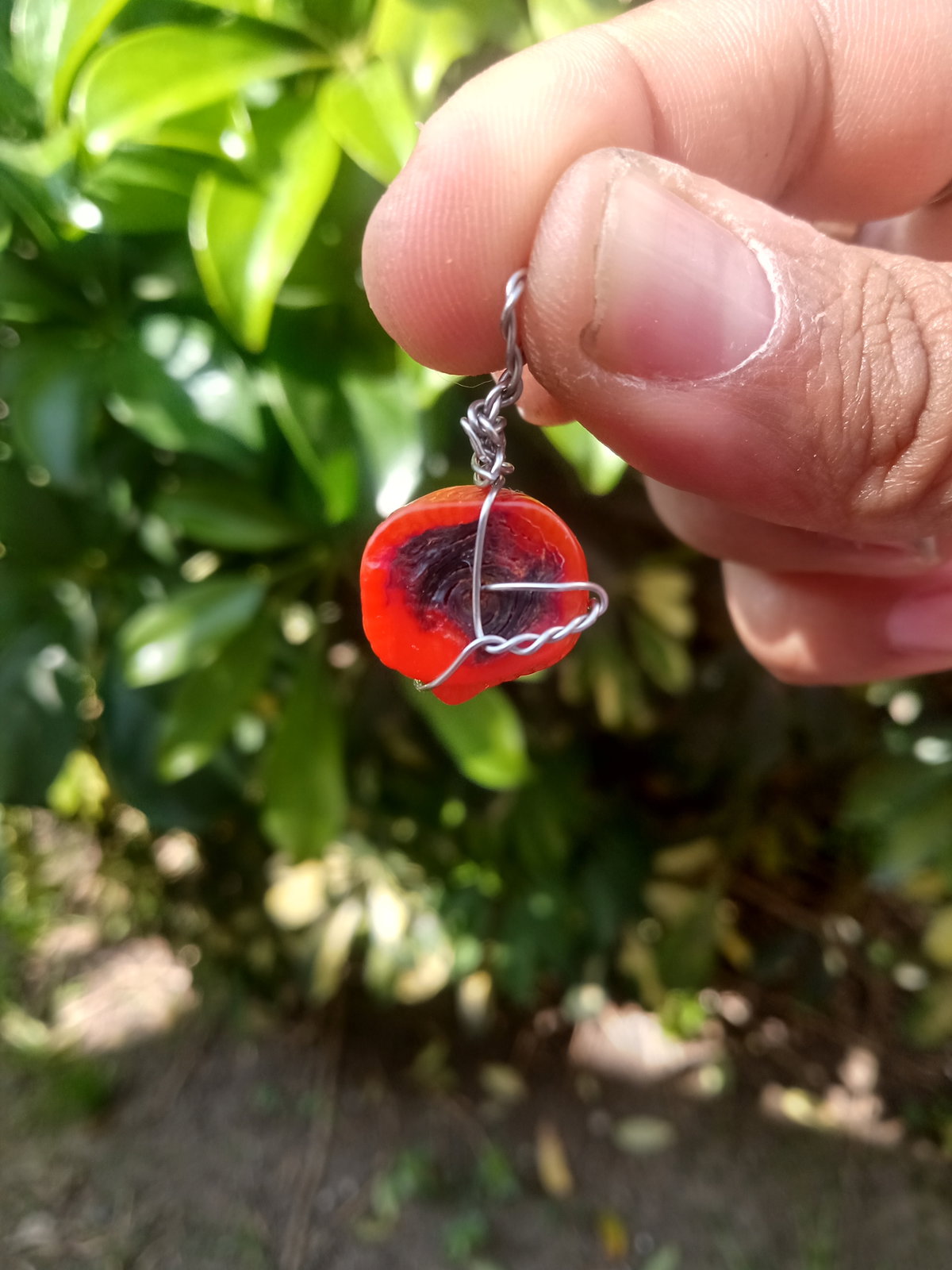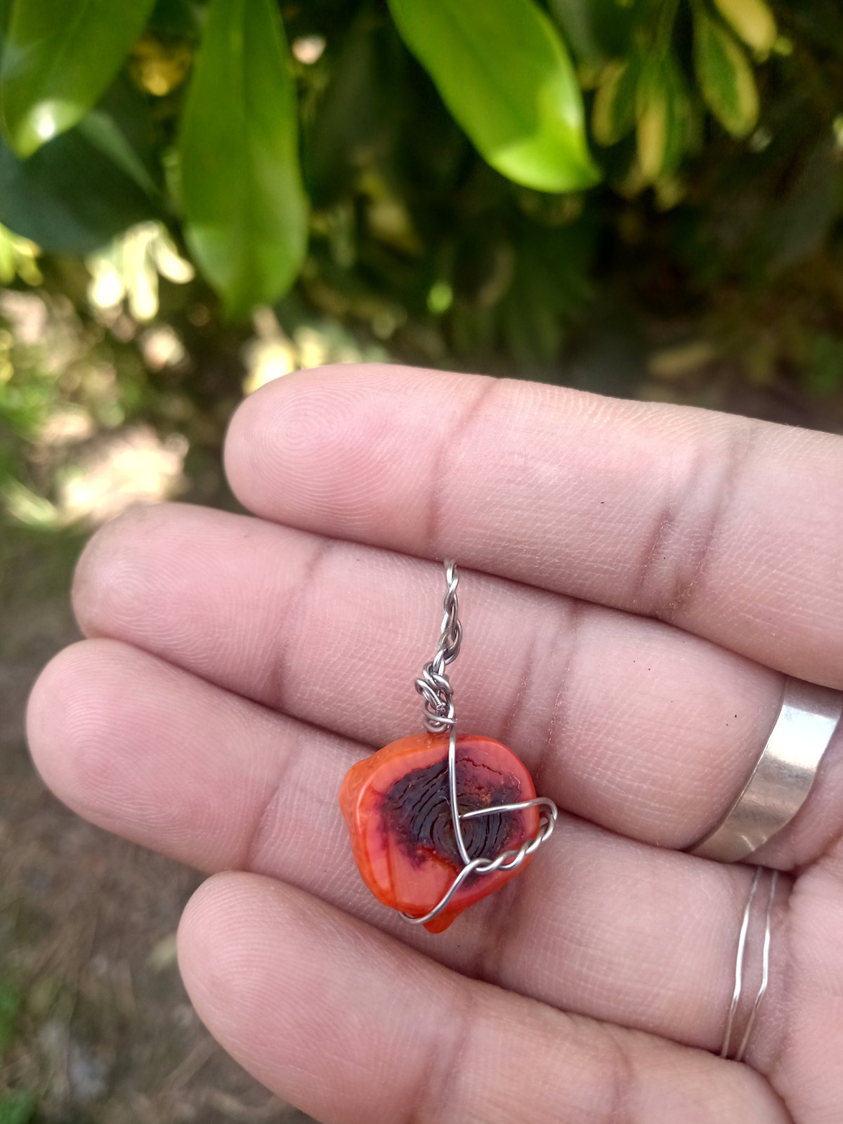 Dije de piedra coral engarzado en alambre de acero