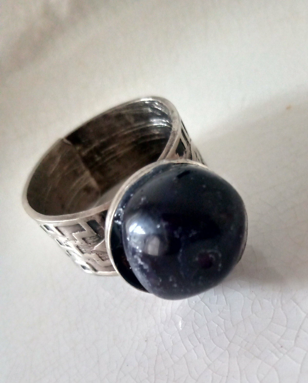 Anillo de alpaca con cinta con piedra ágata violeta. Ajustable.