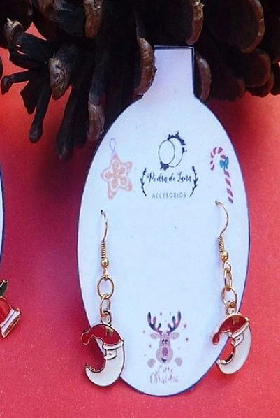 Aros pasante de luna con gorro de navidad