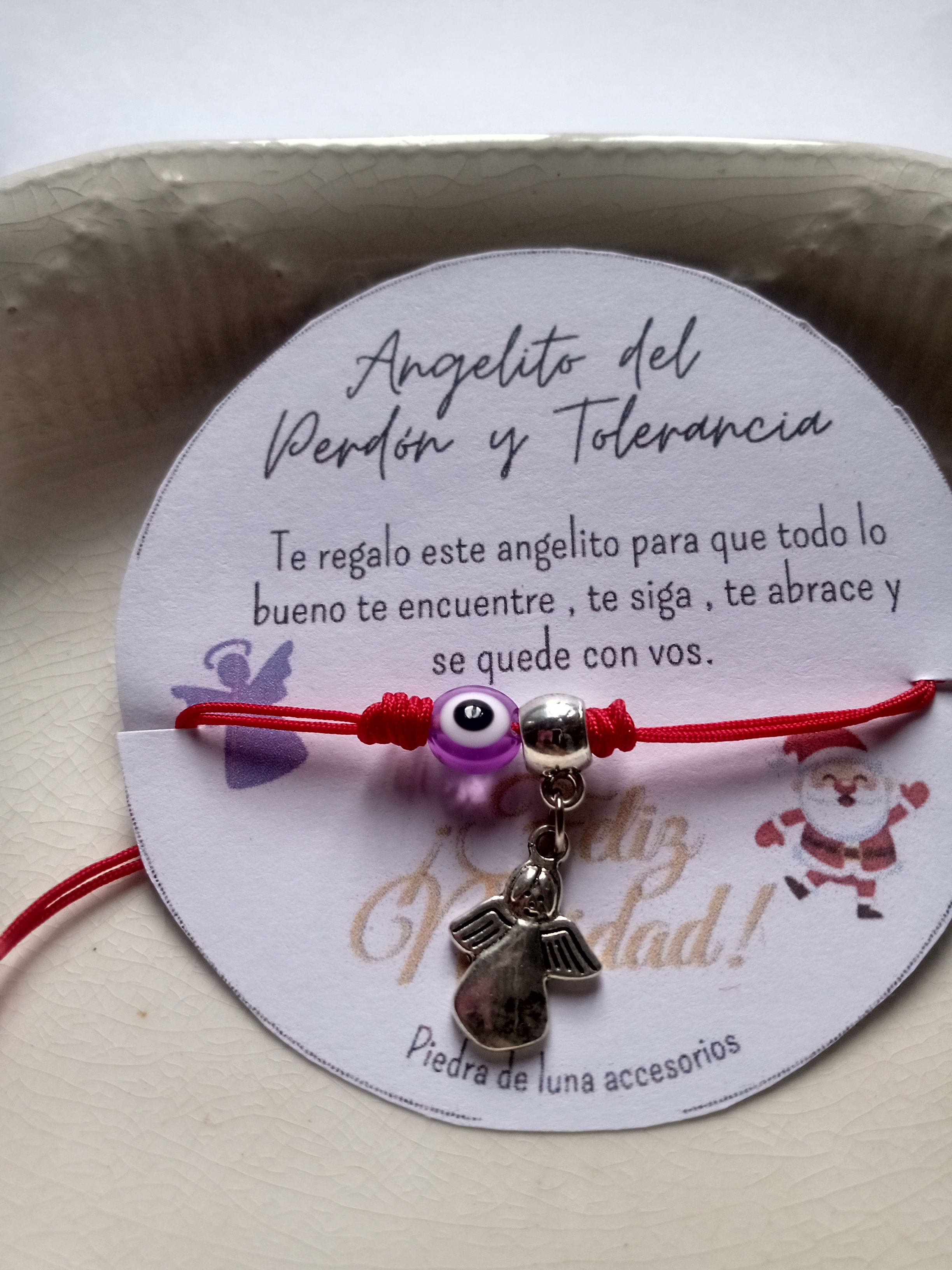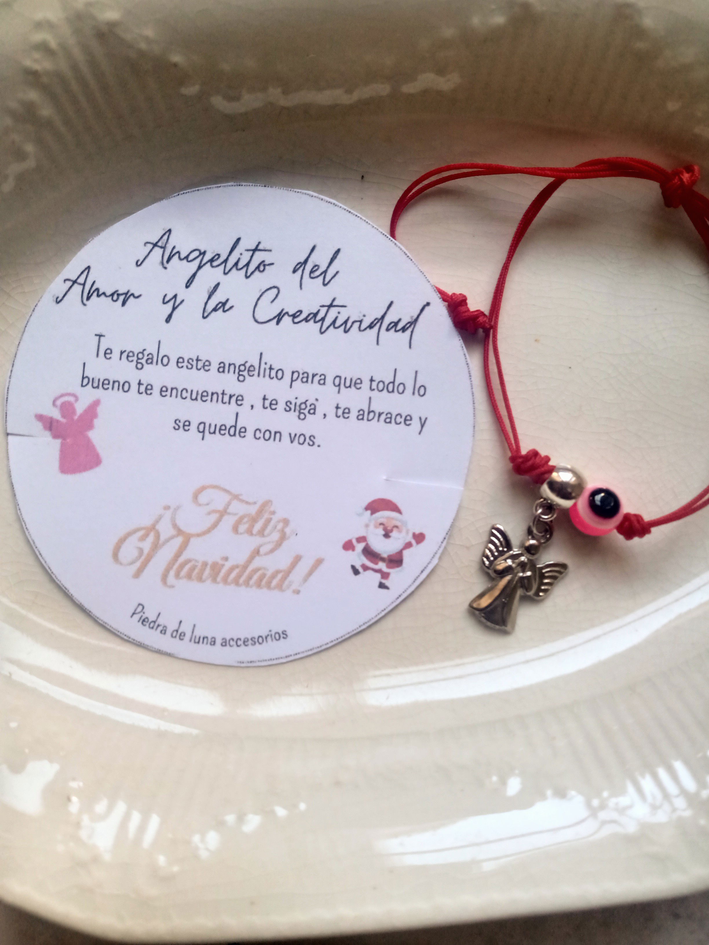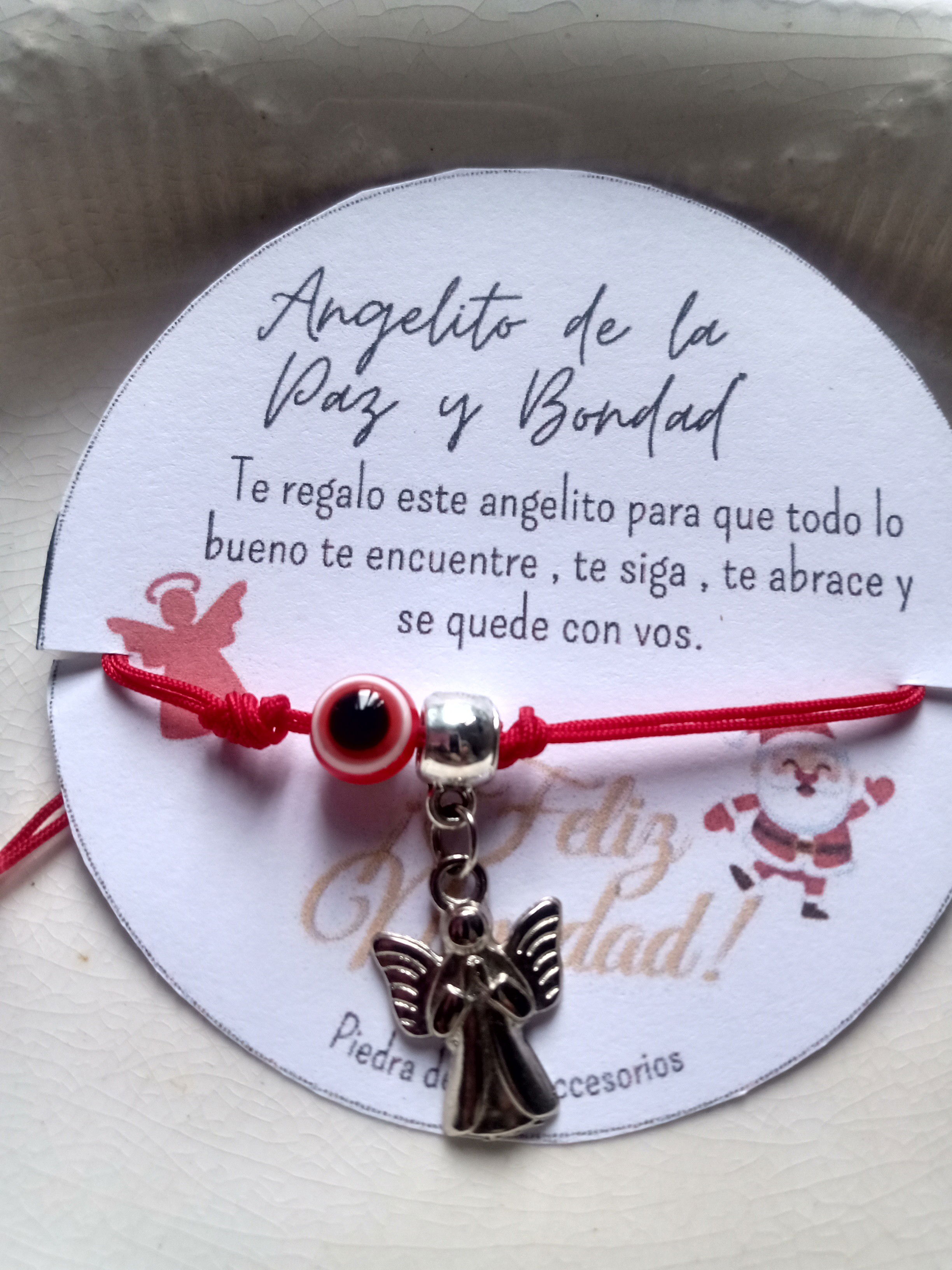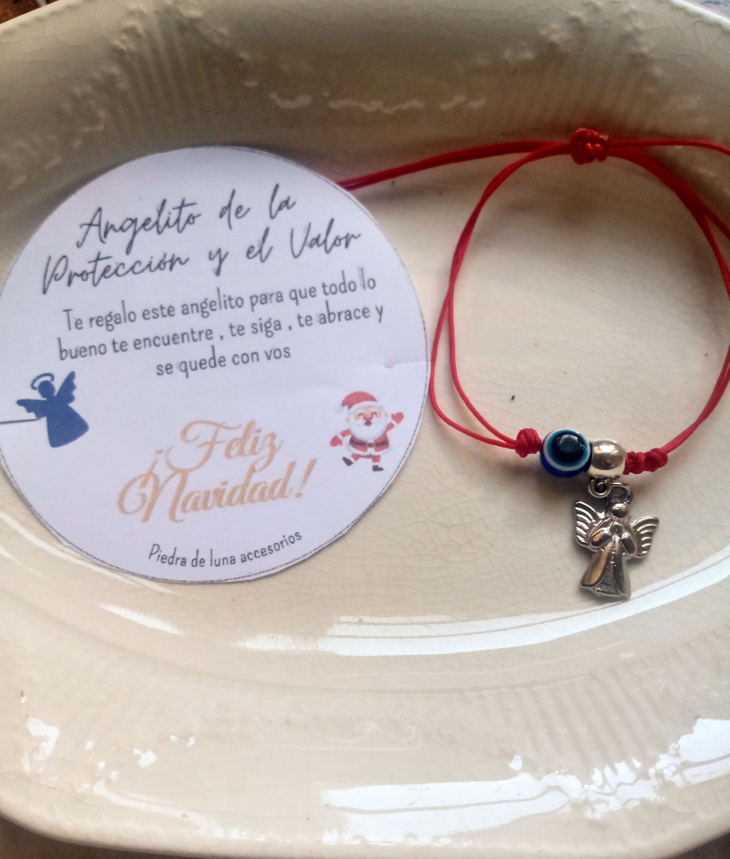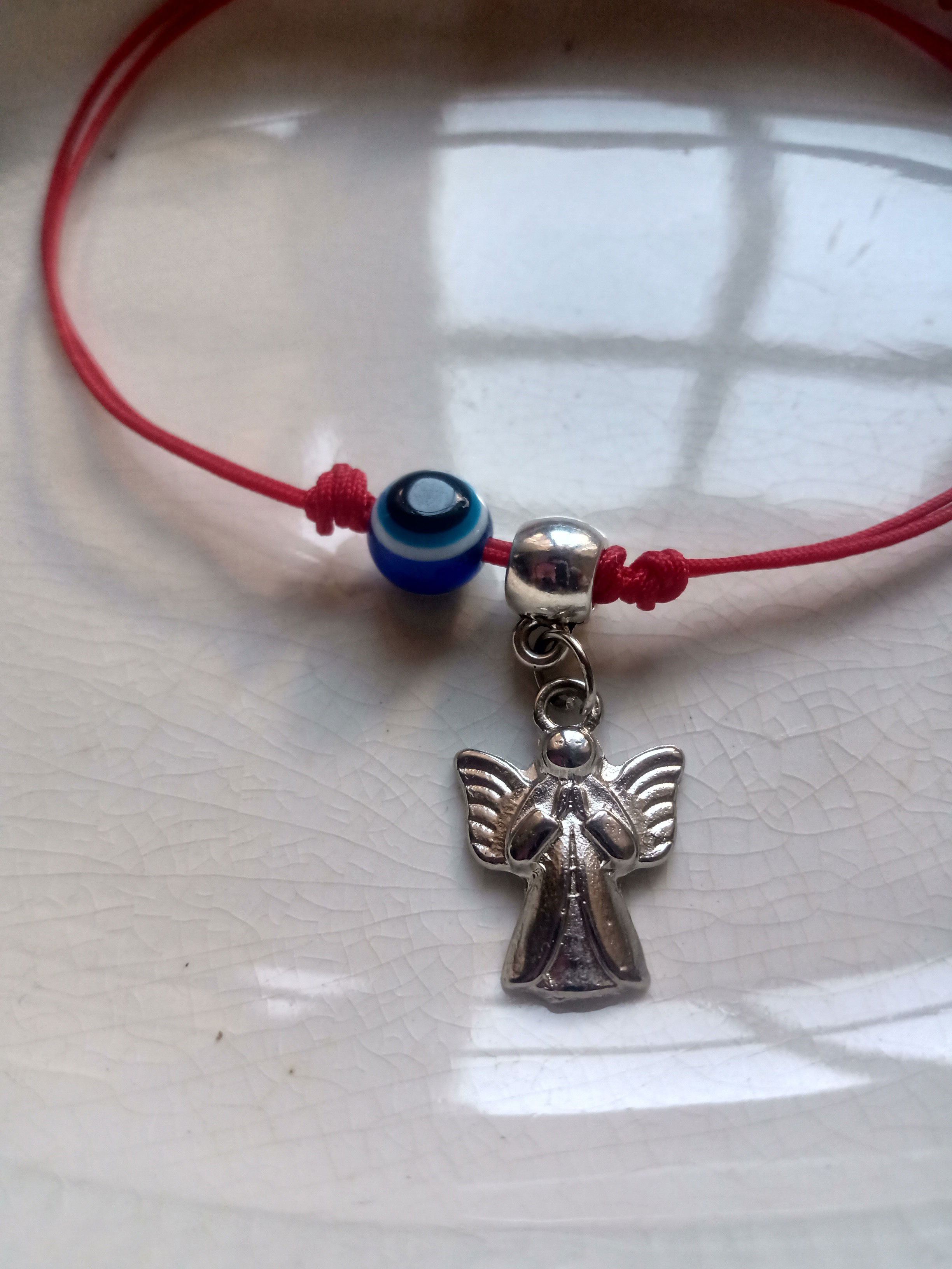 Pulsera de hilo chino rojo con ojo turco dije ángel.