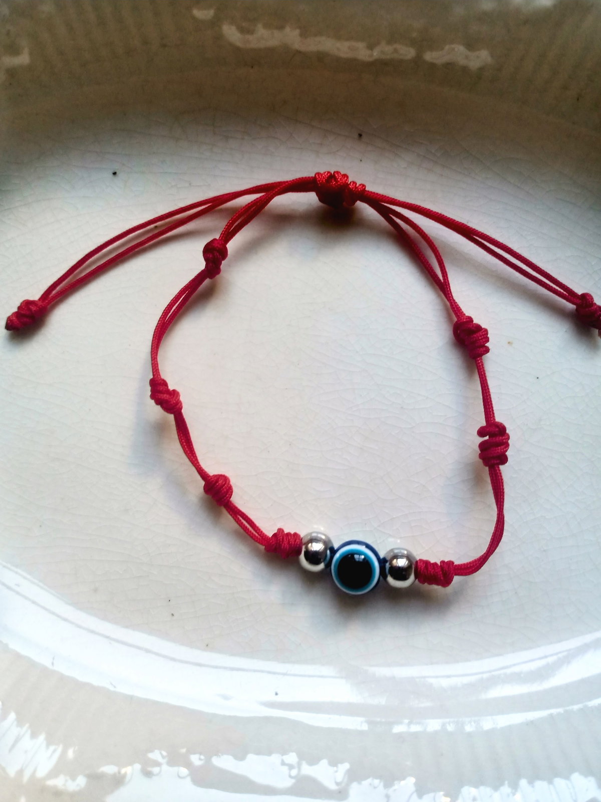 Pulsera de hilo chino rojo con ojo turco. Azul