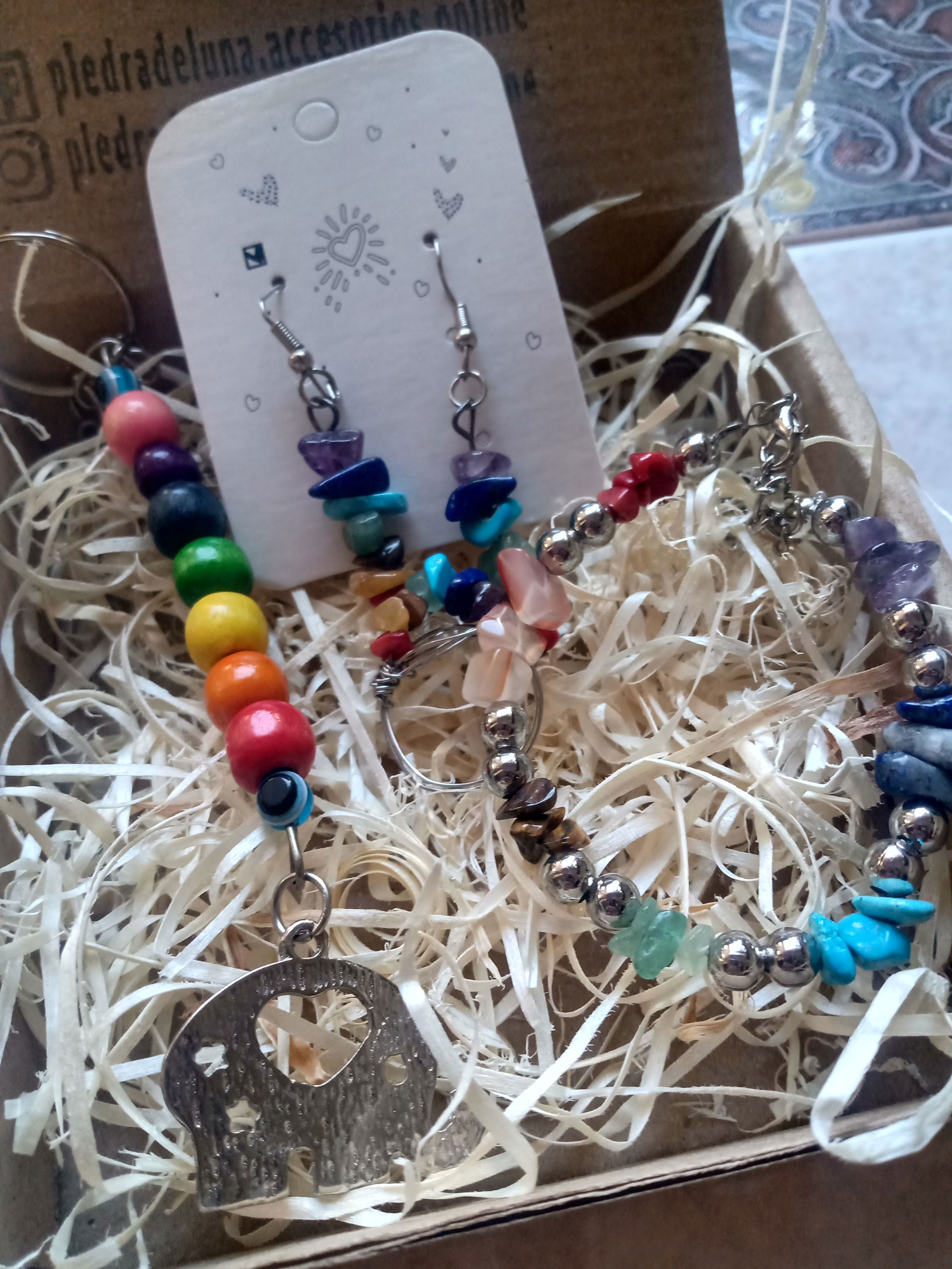 Incluye una pulsera siete chackas + aros siete chackas + llavero siete chackas
