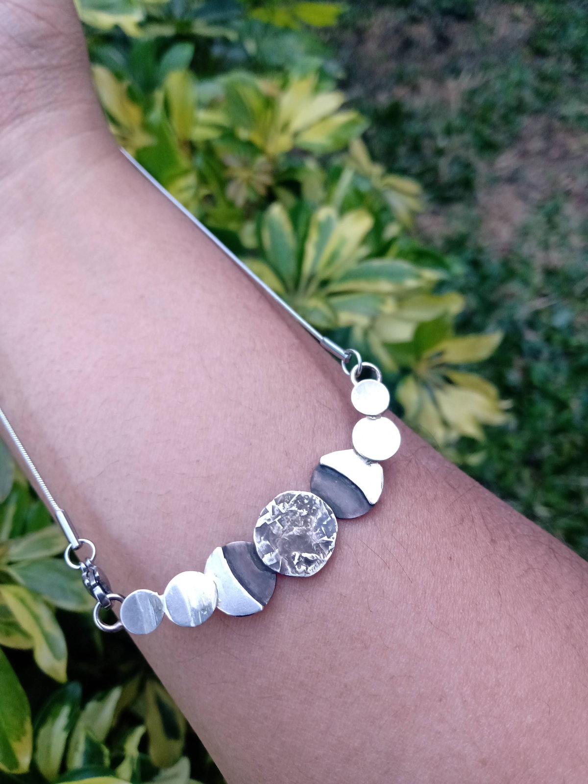 Collar fases de la luna cincelado y hecho 100 % a mano en plata 925. Incluye cadena de acero quirúrgico.