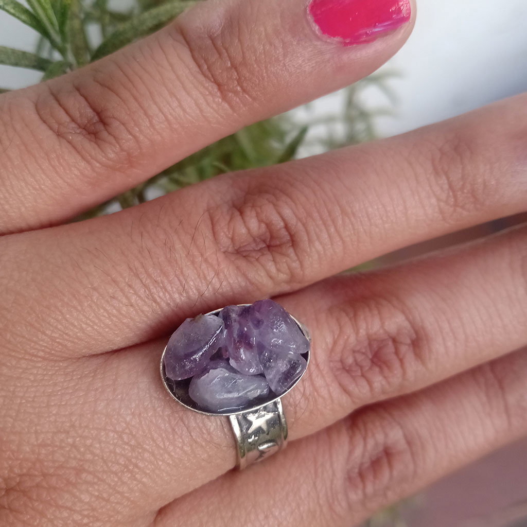 Anillo de alpaca con chips de amatista . Anillo ajustable