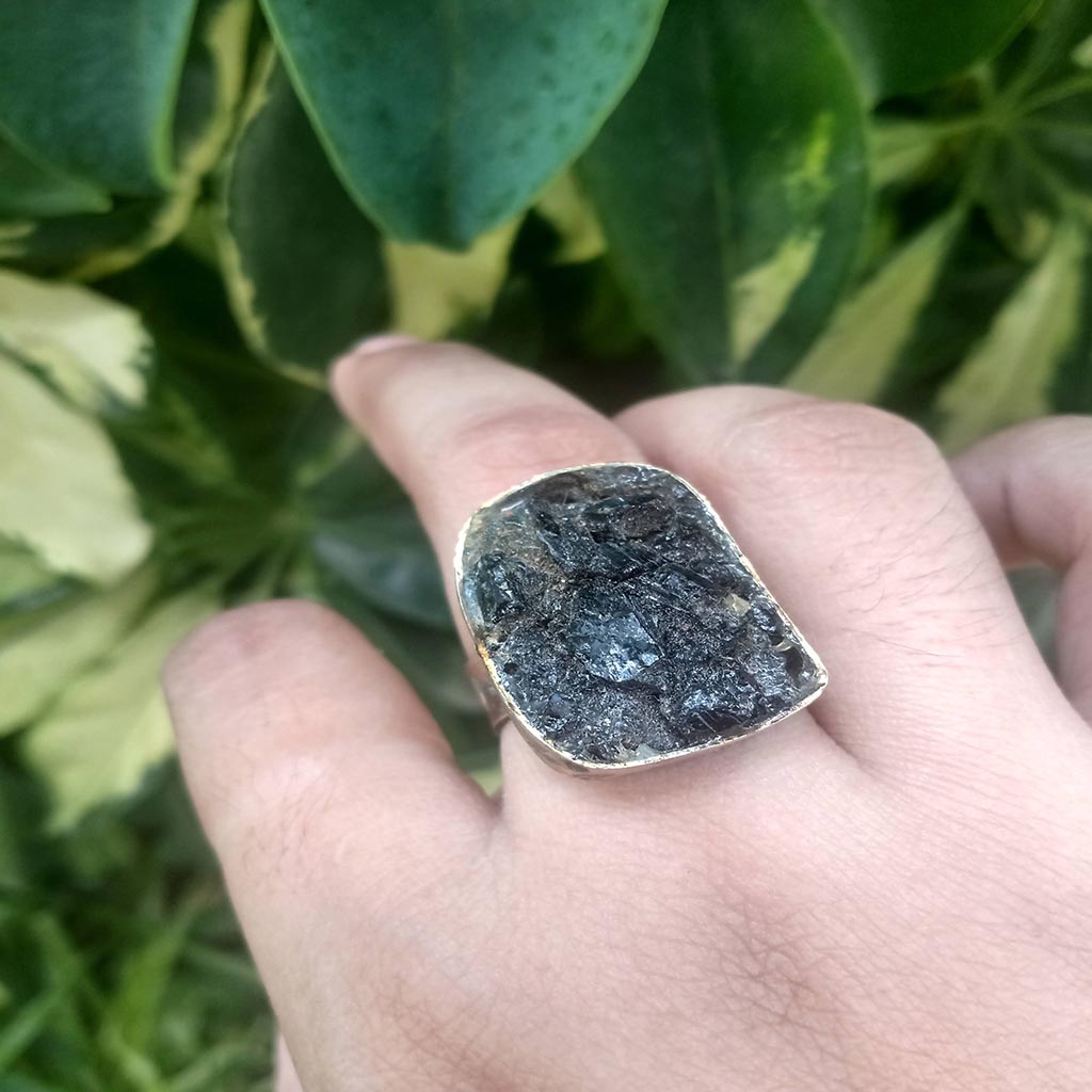 Anillo de alpaca con piedra Turmalina.