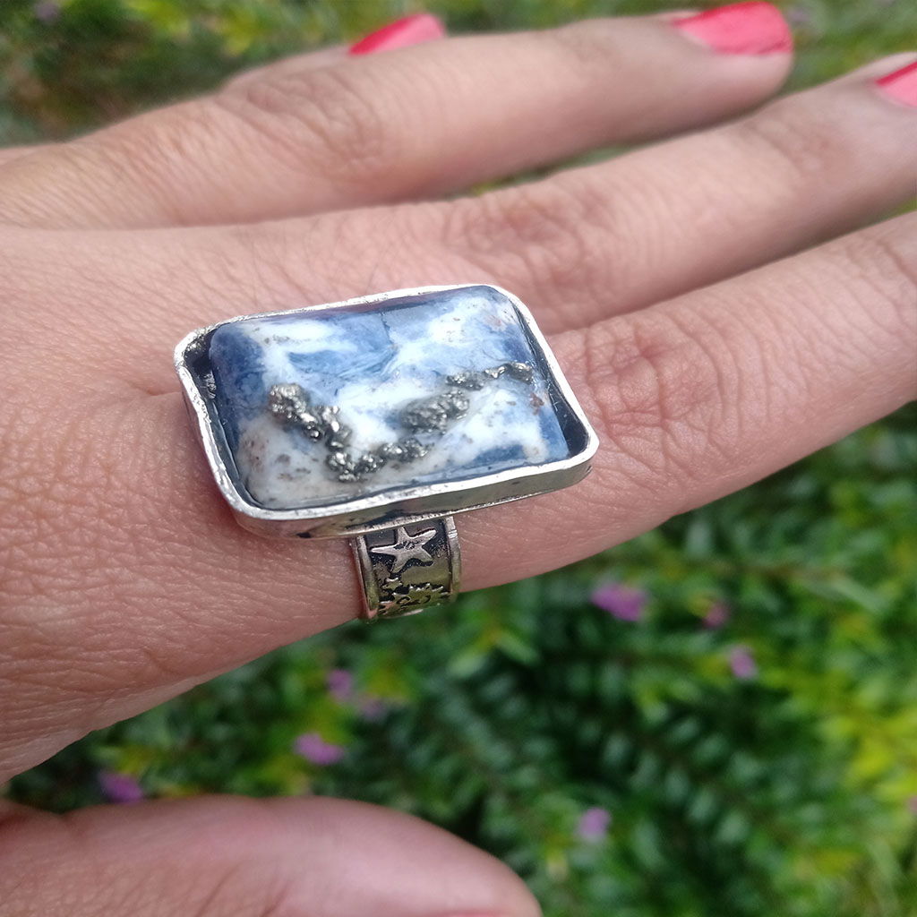 Anillo regulable de alpaca con piedra Sodalita. Ajustable