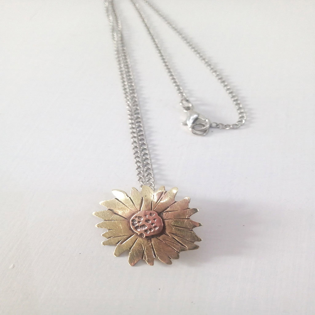 Dije hecho en bronce, alpaca y cobre. Cadena de acero
