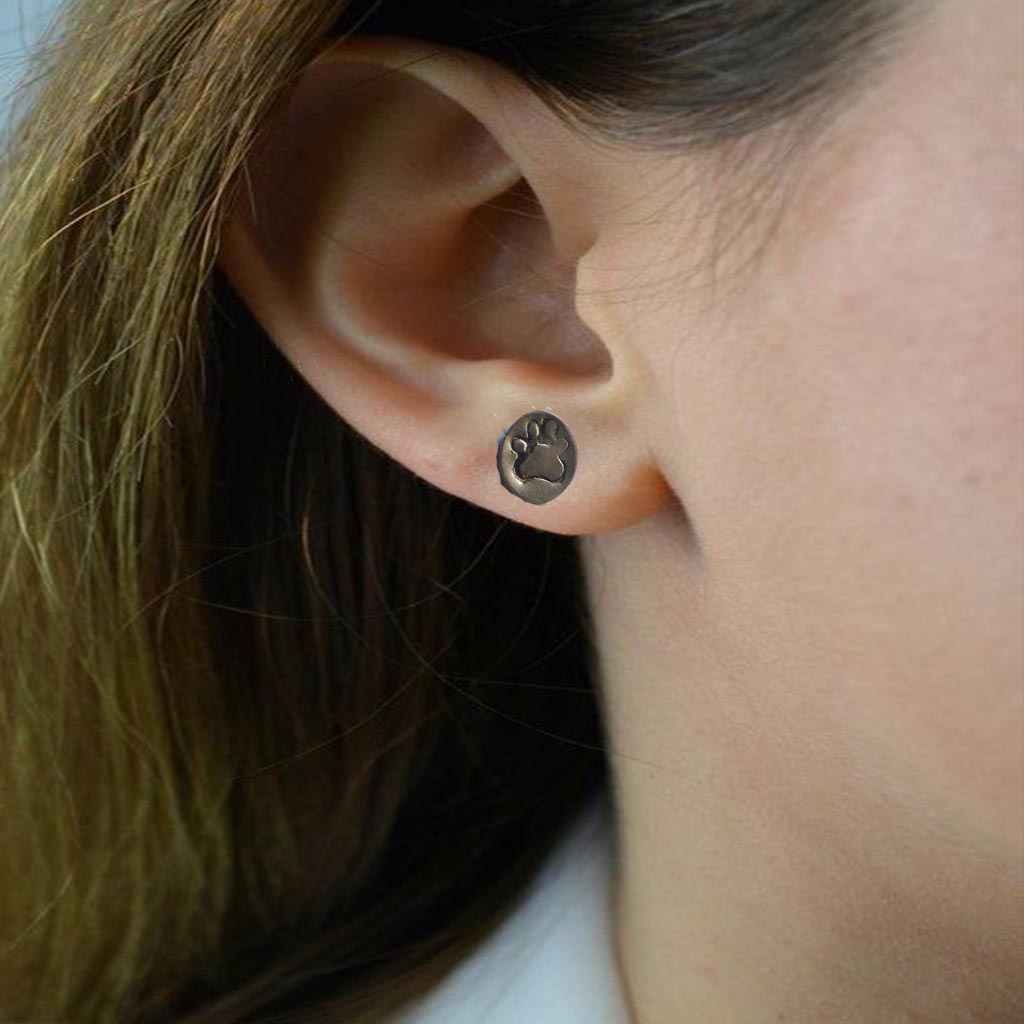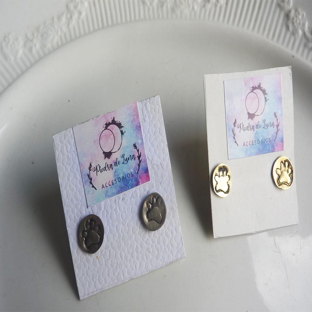 Aros cincelados con huella de patita. Pasantes en bronce y alpaca.