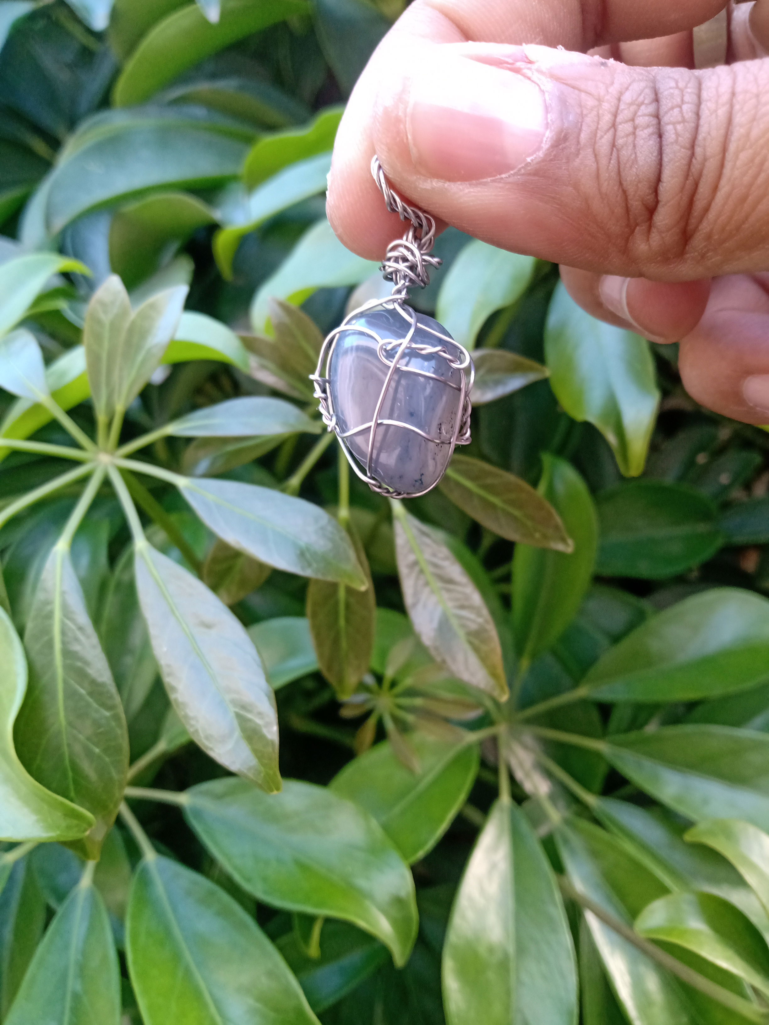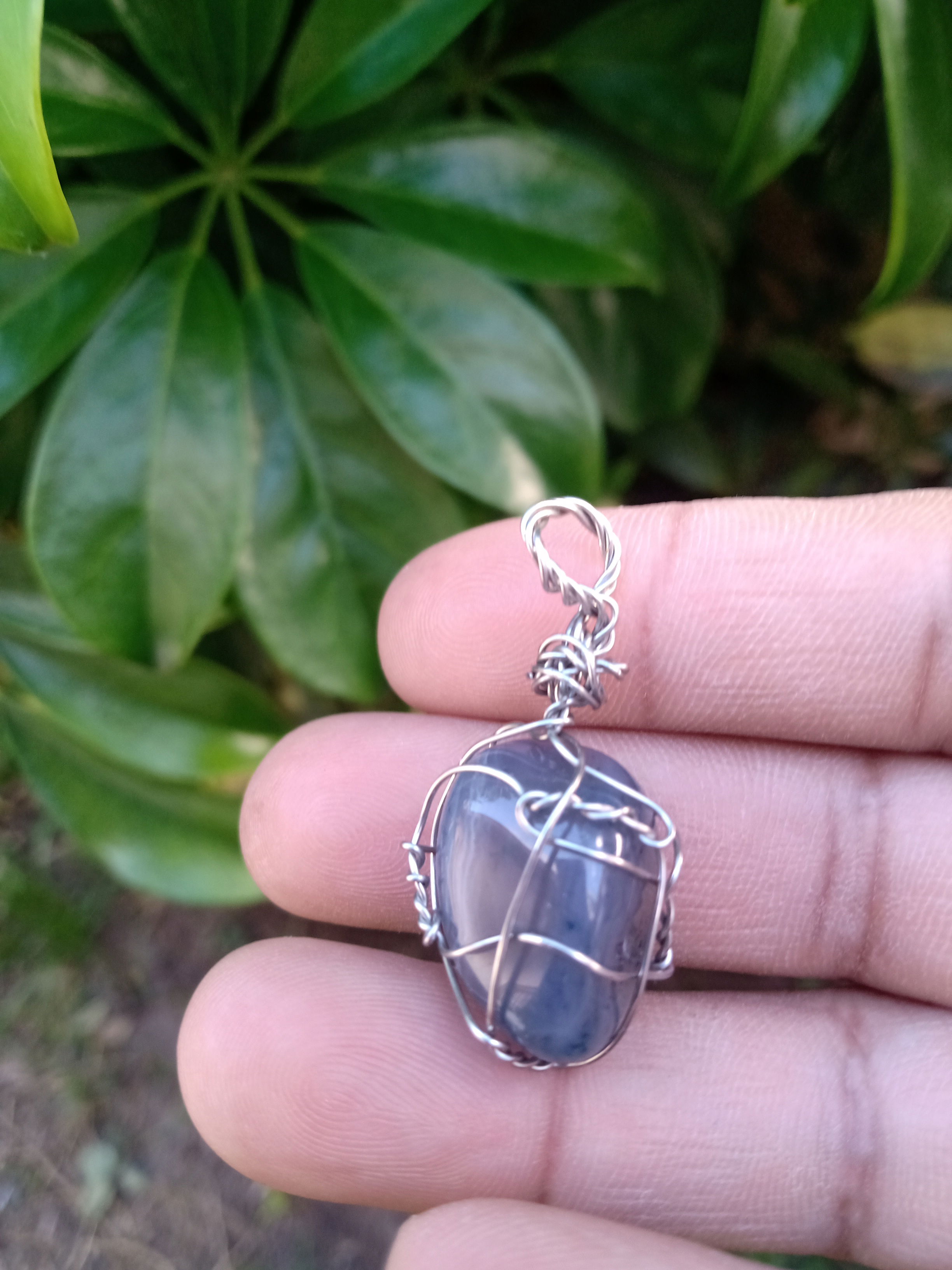 Dije de piedra ágata azul engarzado en alambre de alpaca