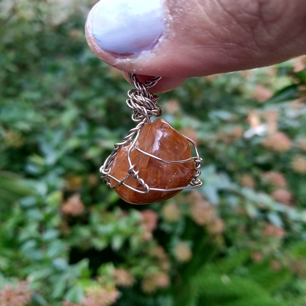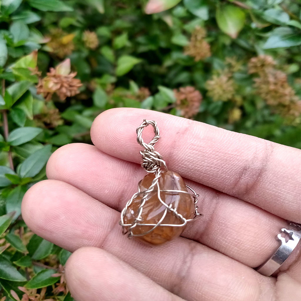 Dije de piedra ágata fuego engarzado en alambre de alpaca