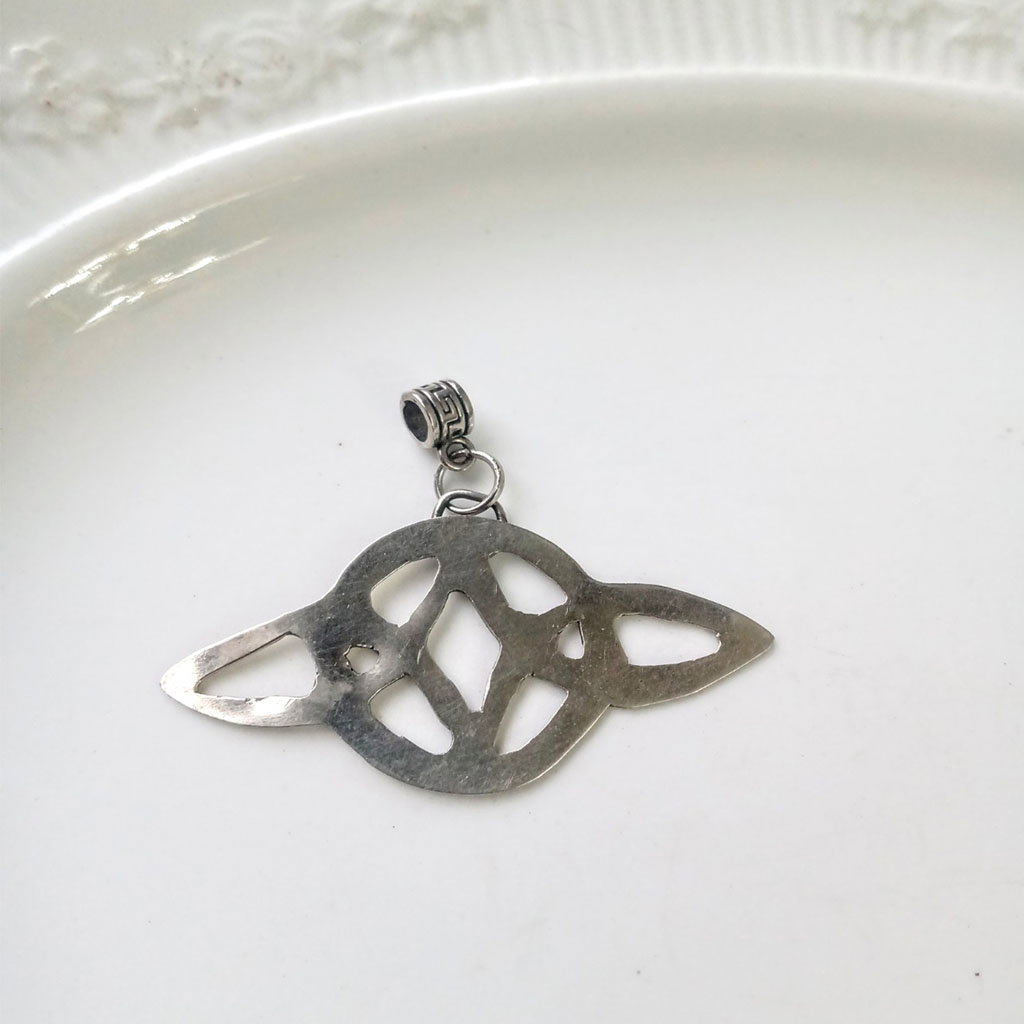 Este símbolo celta de amor eterno está formado por dos triskeles. Cada uno de los triskeles, tiene tres nudos (tres puntas), denotan los tres aspectos de una persona, cuerpo, mente y alma.