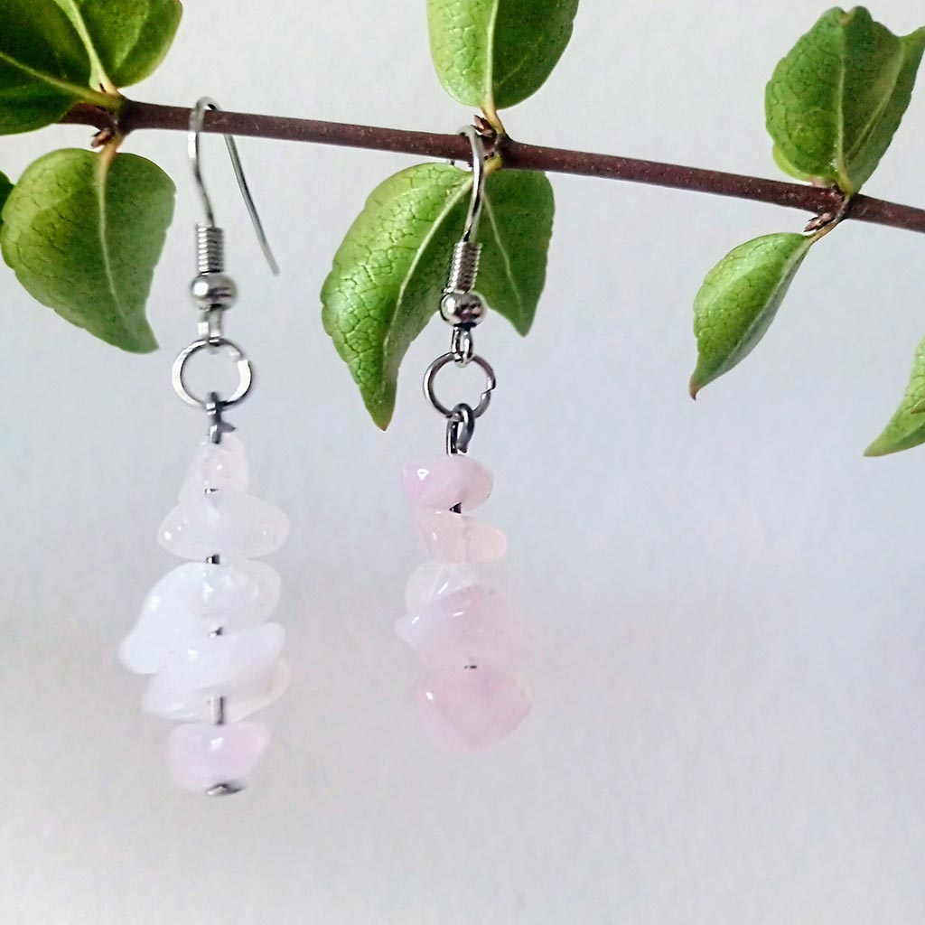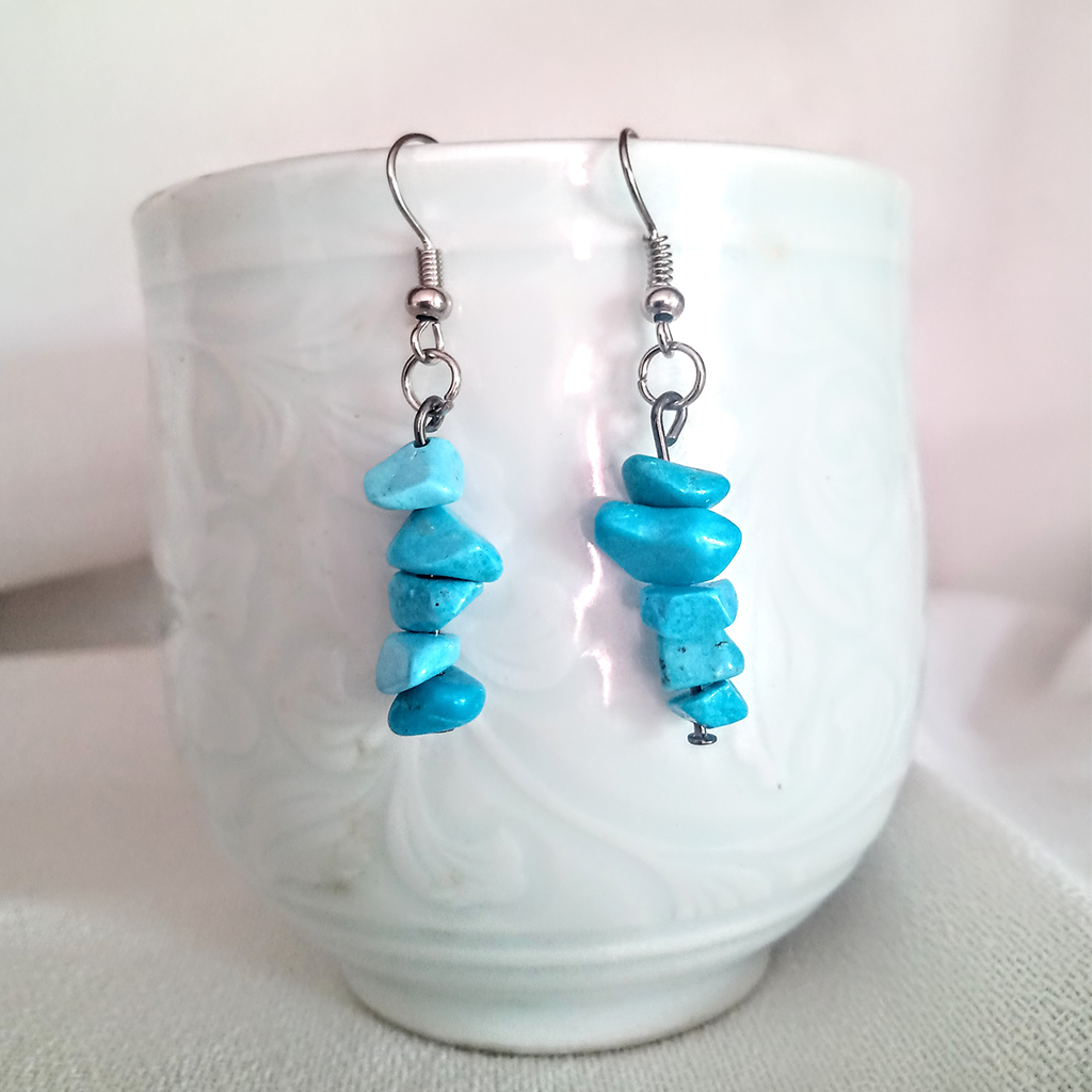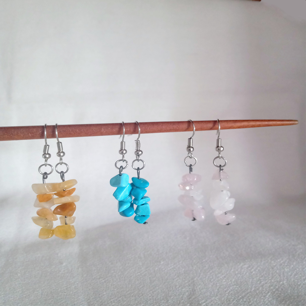 Aros de escallas de piedras naturales cuarzo rosa, turquesa y citrino. Ganchos de acero quirúrgico es hipoalergénico, inoxidable e inalterable. El pasante por dentro de las piedras es de aleación de niquel.