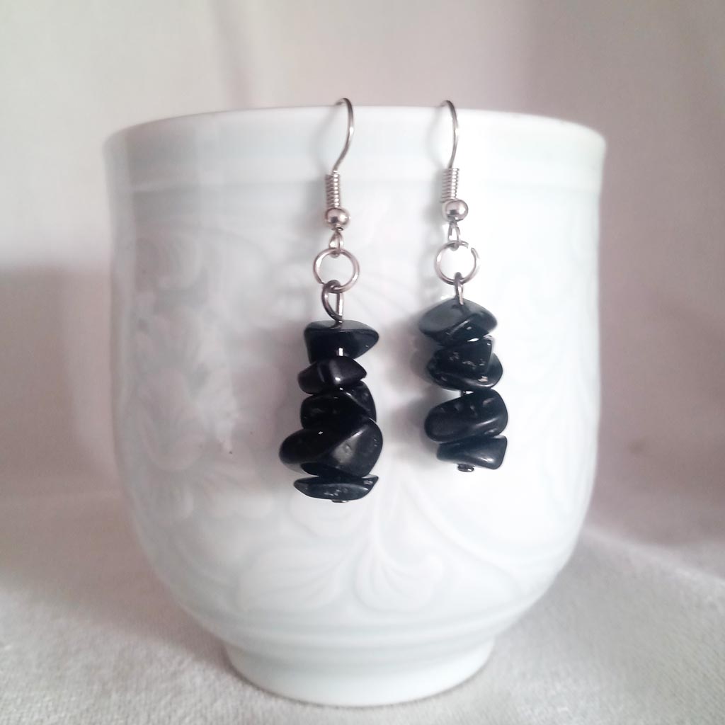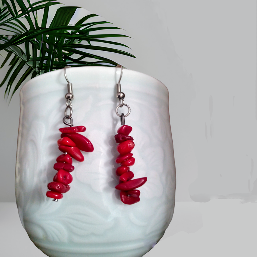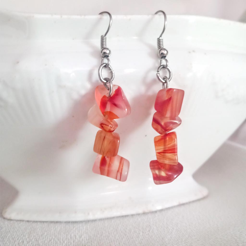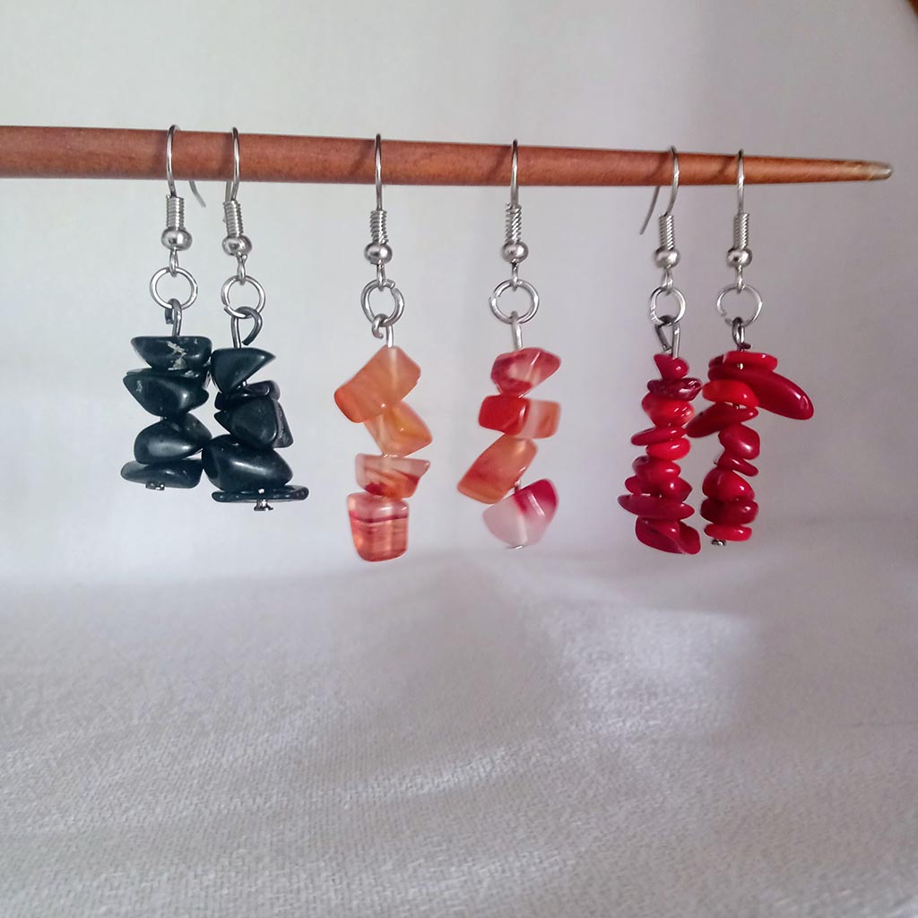 Aros de escallas de piedras naturales de obsidiana, coralina, coral . Ganchos de acero quirúrgico es hipoalergénico, inoxidable e inalterable. El pasante por dentro de las piedras es de aleación de níquel