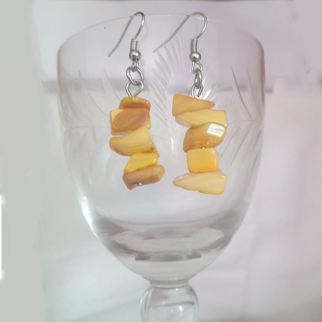 Aros de nácar de escallas verdes, amarillo y azul Ganchos de acero quirúrgico es hipoalergénico, inoxidable e inalterable. El pasante por dentro de las piedras es de aleación de níquel