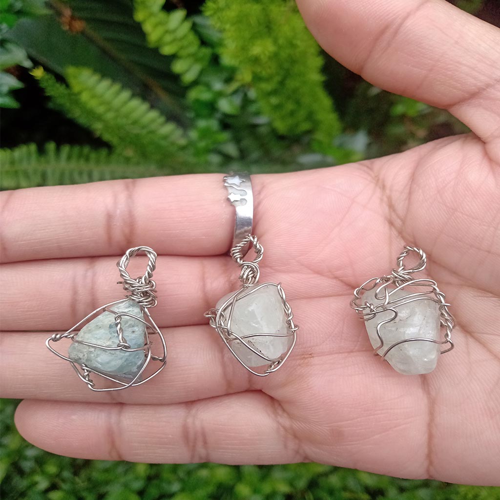 Dije de piedra aguamarina engarzado en alambre de alpaca