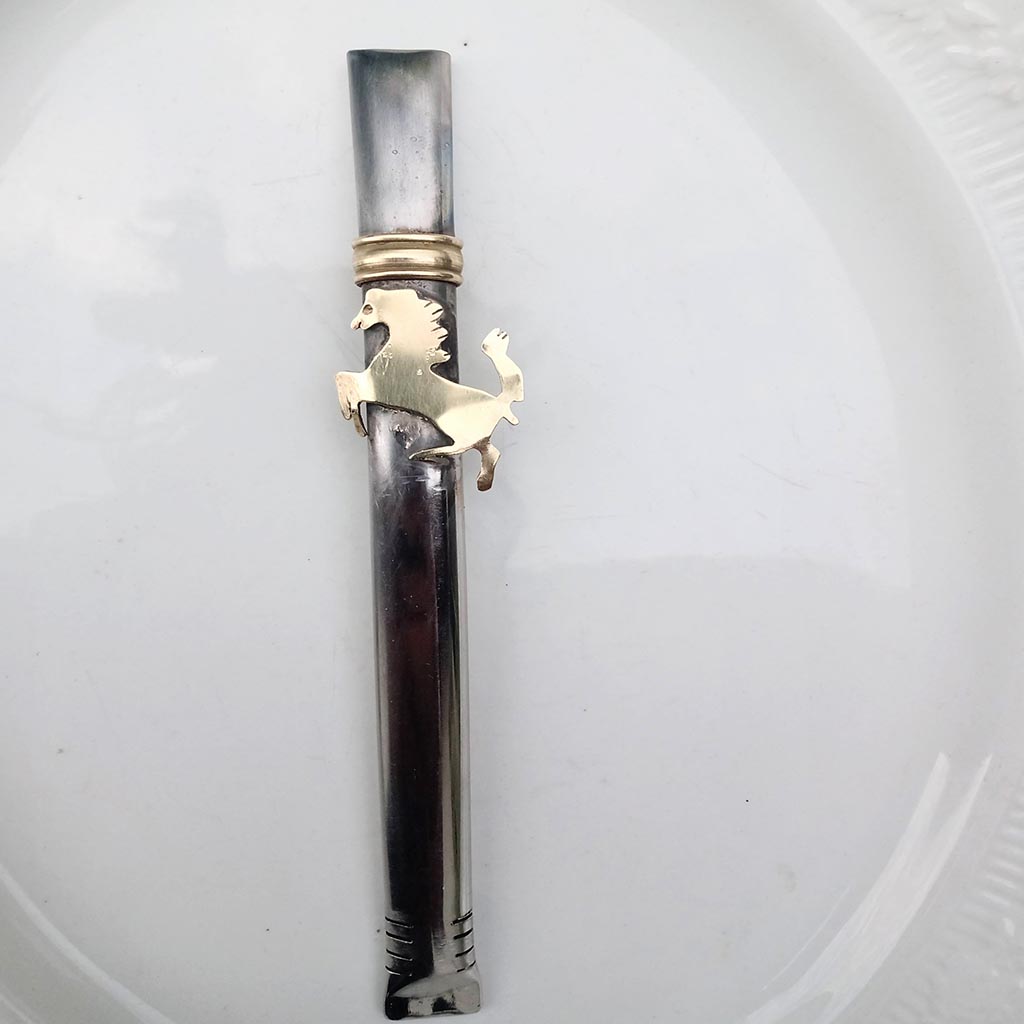 Bombilla con aplique de escudo de Ferrari Cavallino rampante. Virola de bronce. No se tapa, ni se oxida.