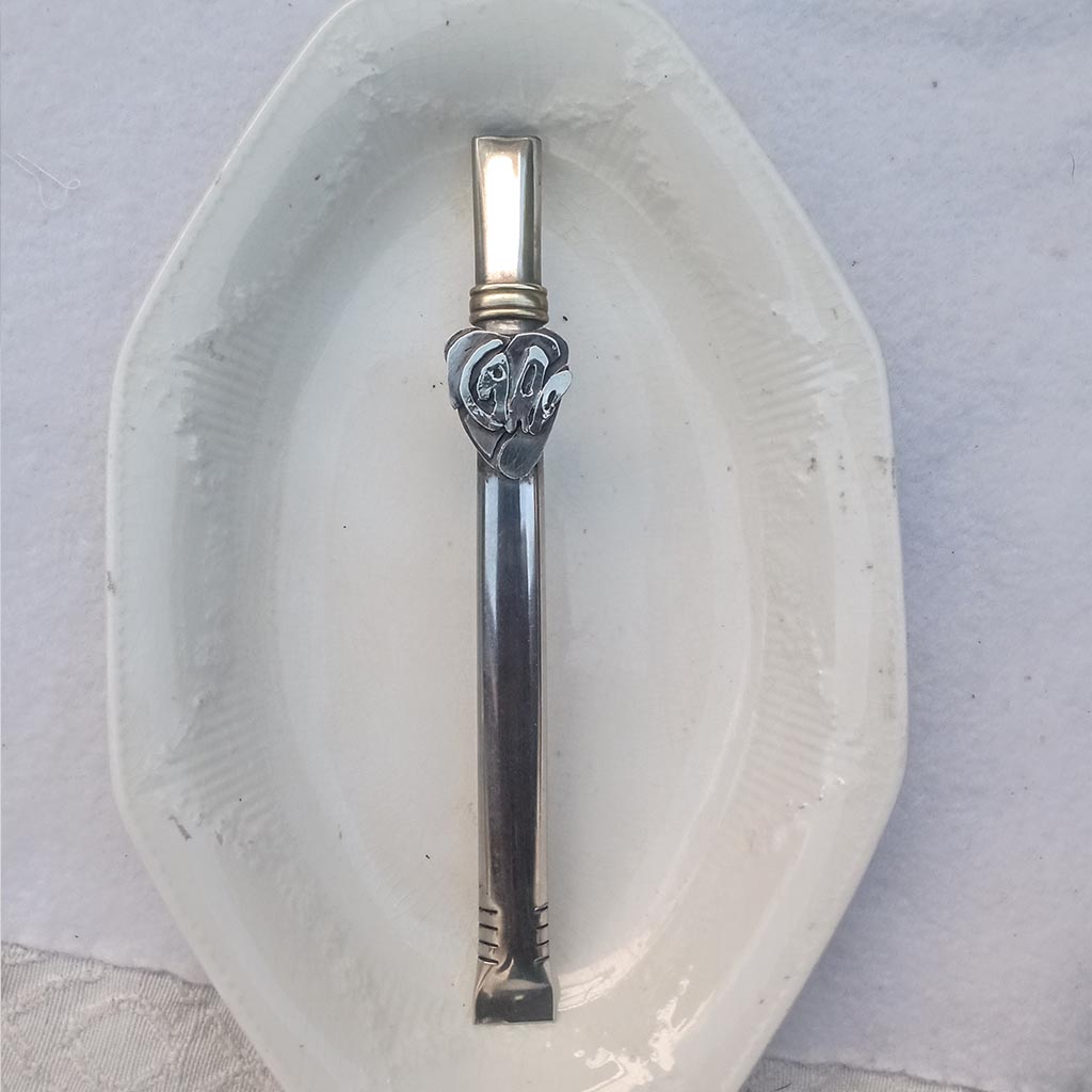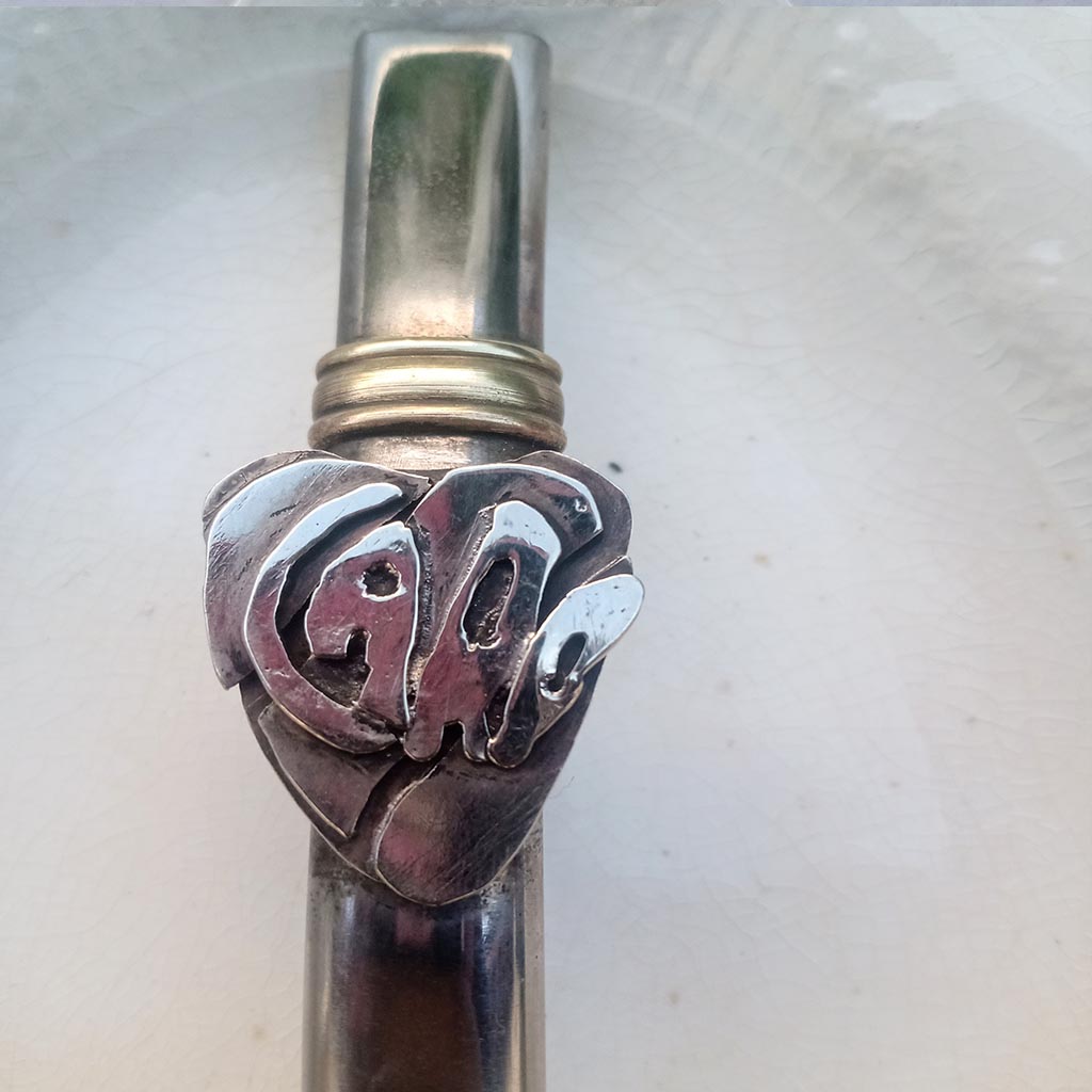 Bombilla con aplique de escudo escudo de River plate hecha en alpaca. Ideal para fans.