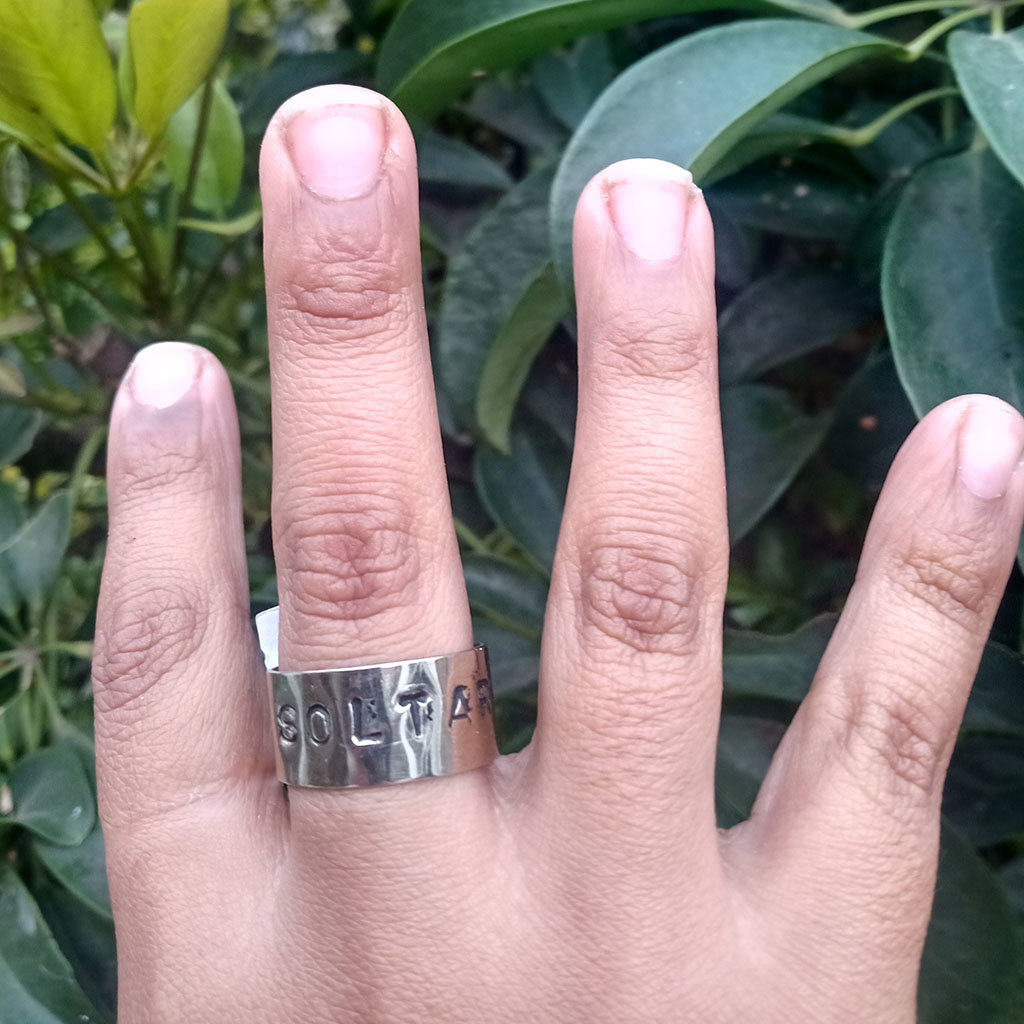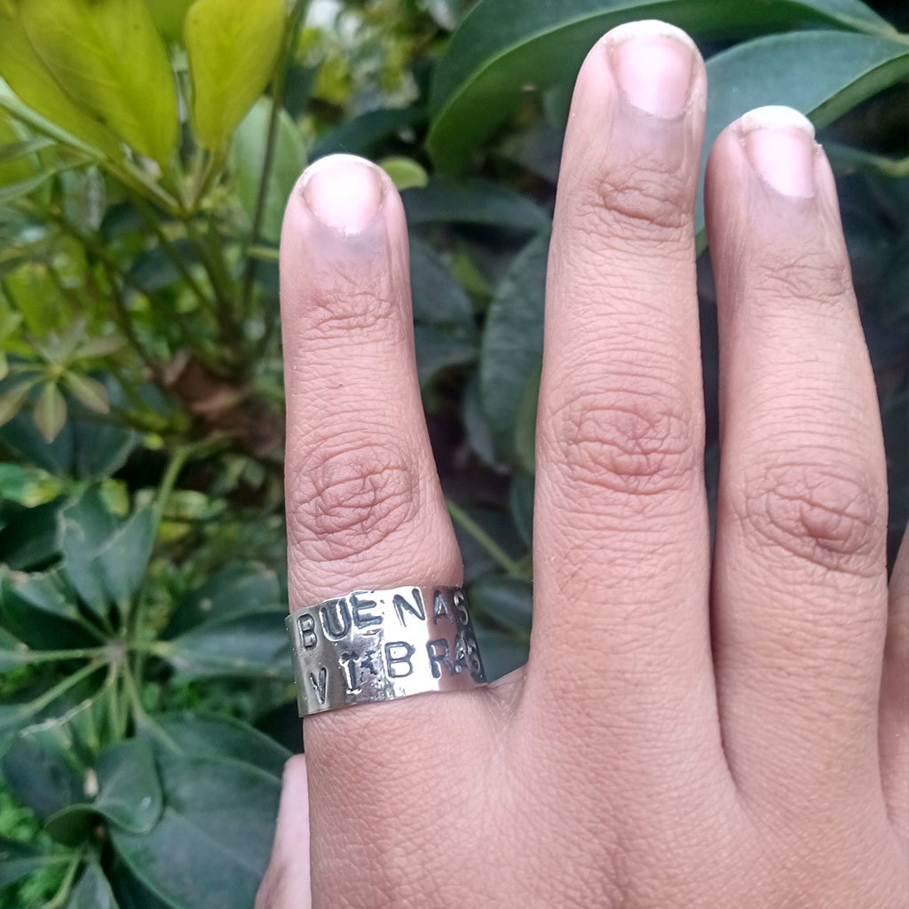 Anillo de alpaca regulable con palabra soltar o buenas vibras también podes personalizarlo (nombres, palabras, el nombre de tu signo zodiacal o con lo que quieras.