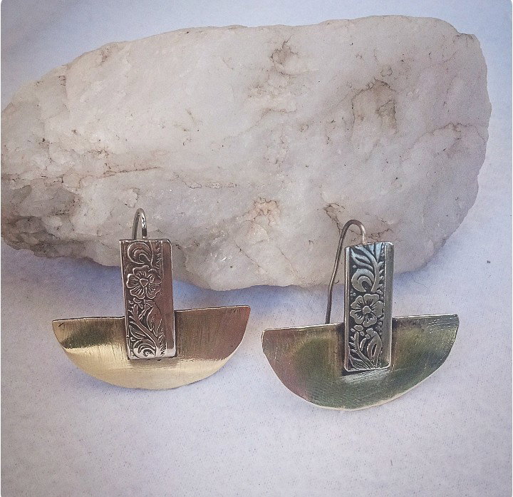 Aros de alpaca y bronce. Pasante de alpaca.