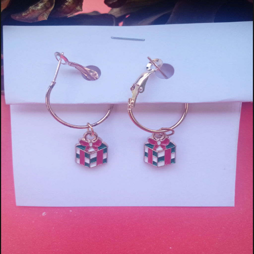 Aros Argollas doradas de níquel con dije esmaltados con de regalo.