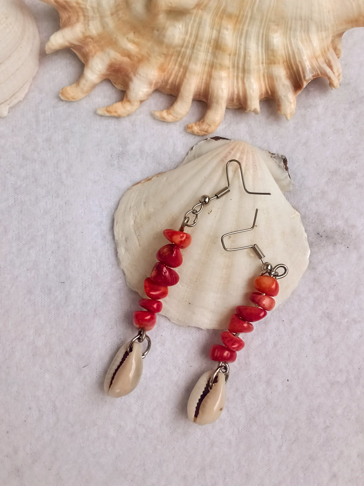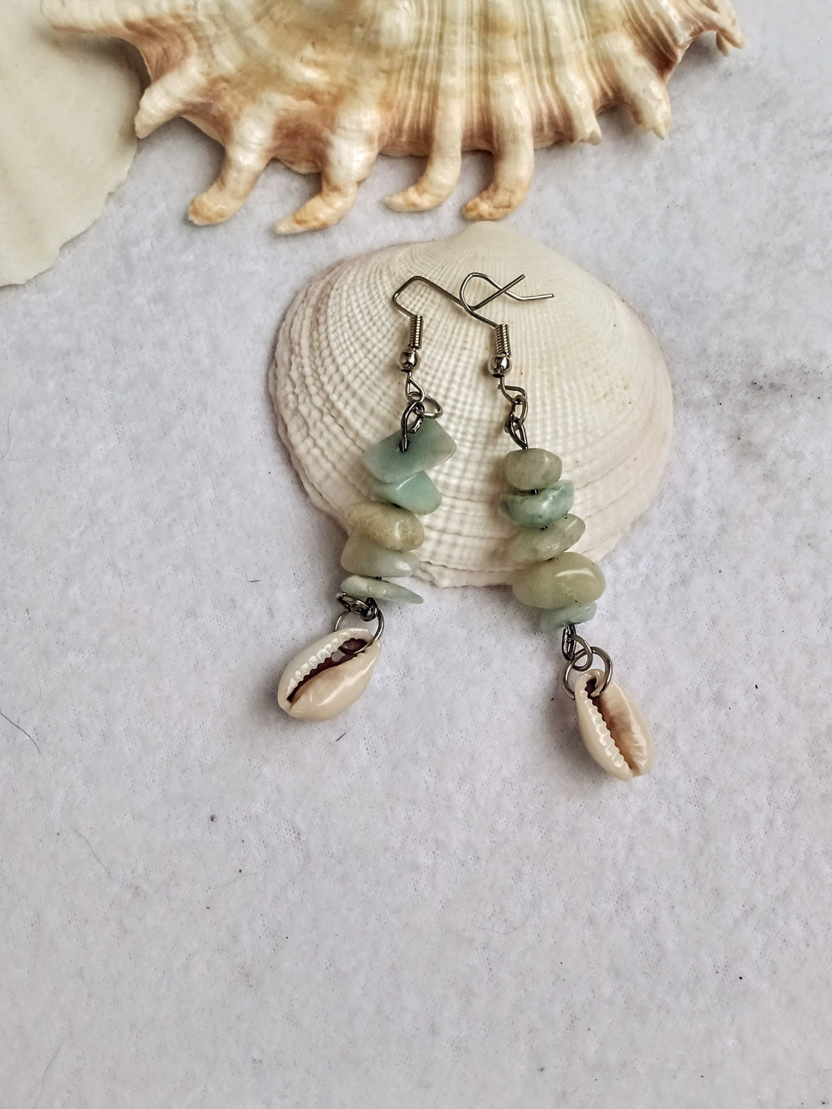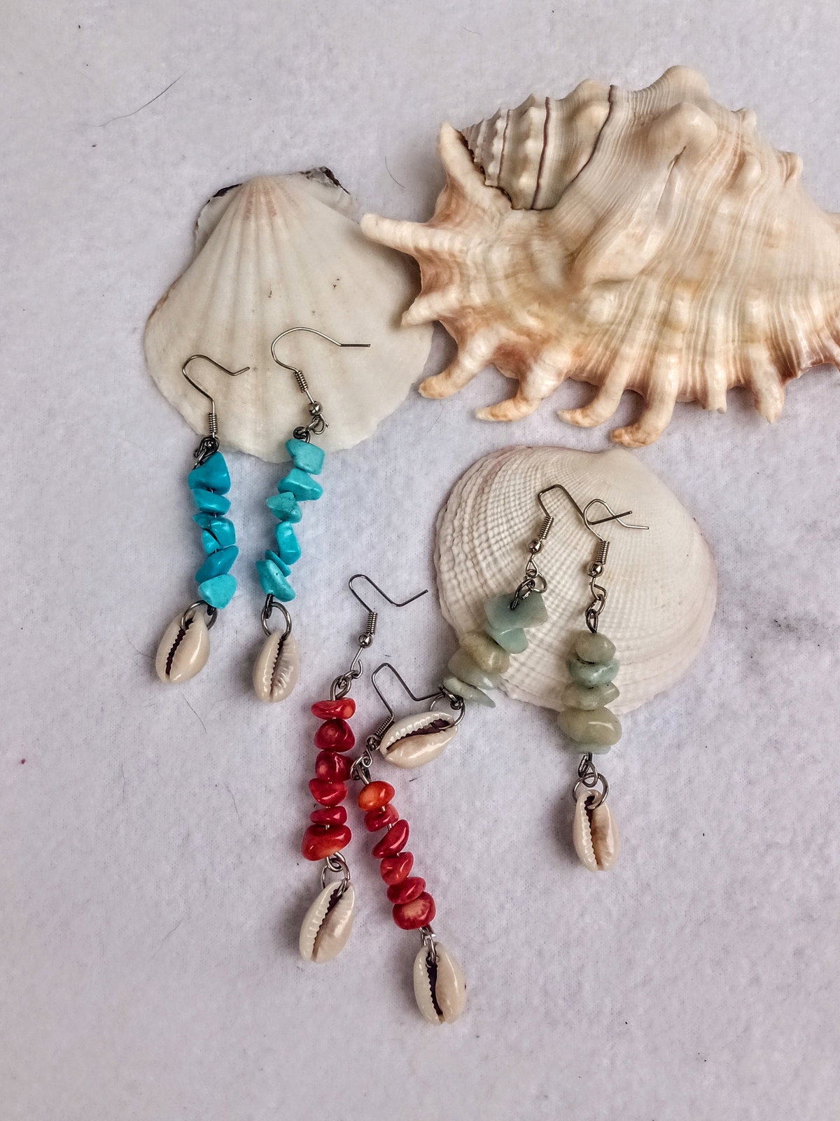 Aros de escallas de piedras naturales con dije de caracol Natural.